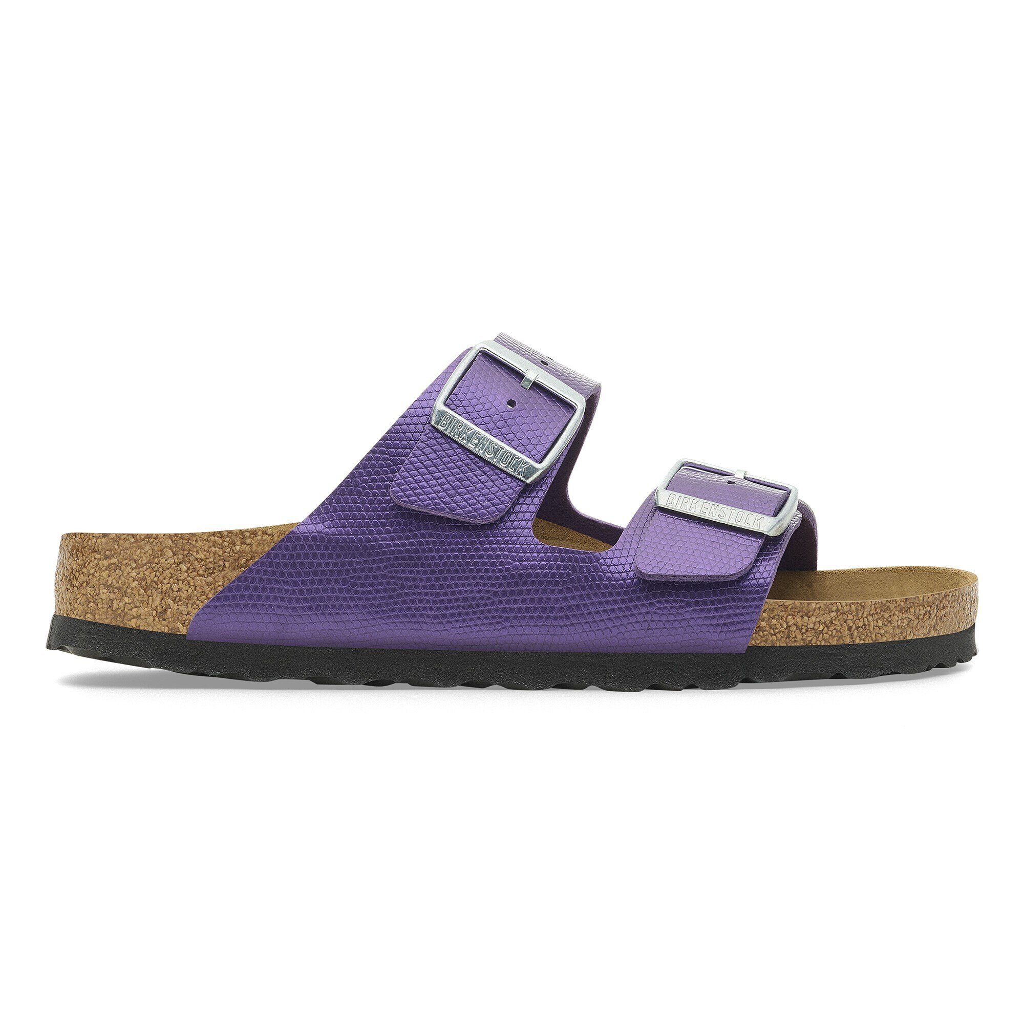 صندل أريزونا من بيركنستوك هو أحد التصاميم الكلاسيكية الأصلية التي لطالما أسعدت الرجال والنساء على حد سواء لعقود بفضل نمطها الخالد. يأتي هذا الإصدار بتصميم السحلية اللامع ويفيض بالأناقة ولمسة من الترف بفضل الرقاقة المعدنية القزحية ومظهر جلد الزواحف. أحذية مستوحاة من الطبيعة، لا يوجد حذاءان لهما نفس المظهر والملمس. الجزء العلوي مصنوع من مادة بيركوفلور المزخرفة الاصطناعية اللطيفة على البشرة والمتينة.
