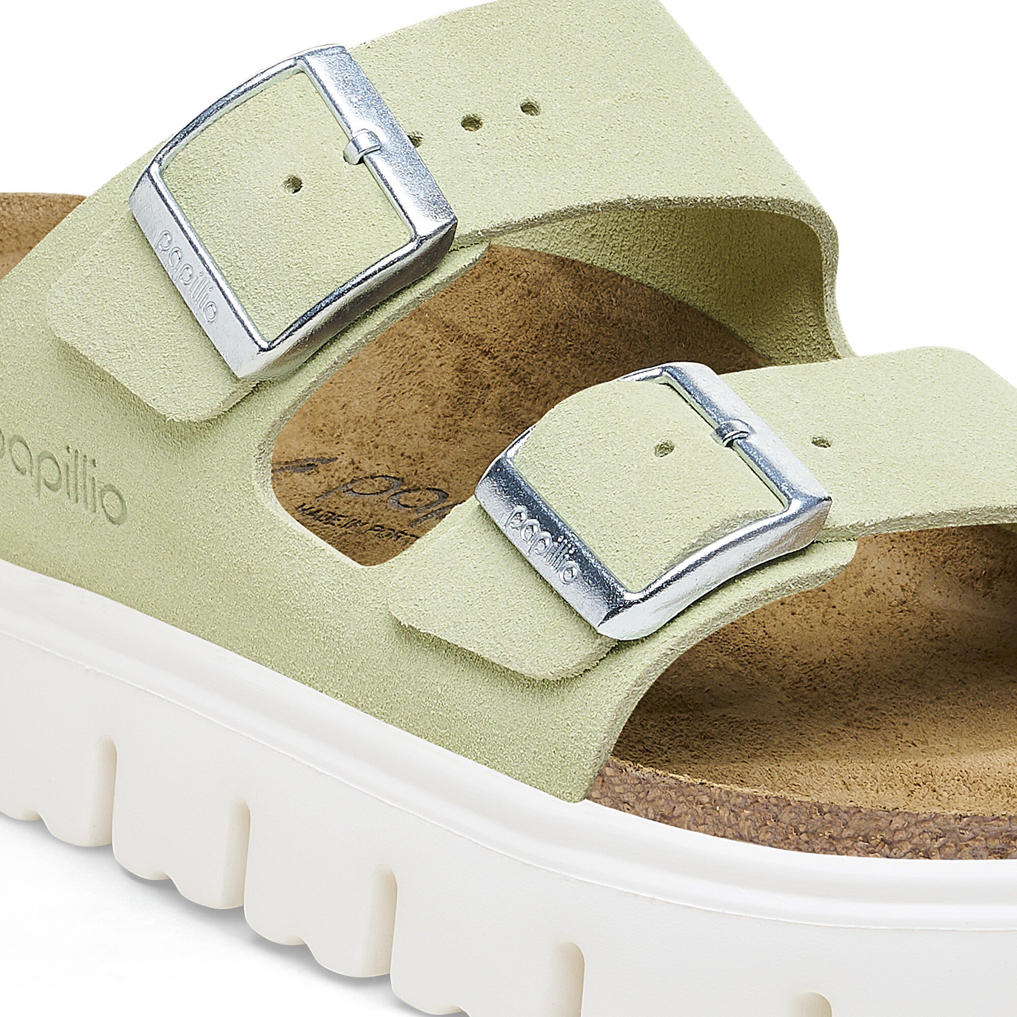صندل أريزونا هو أحد التصاميم الكلاسيكية الأصلية التي لطالما أسعدت الرجال والنساء على حد سواء لعقود. هنا، تُقدّم بابيليو الطراز المُكوّن من شريطين مع نعل سميك وأنيق مع خطوط عميقة إضافية. كما تؤدي الحواف المائلة إلى الوصول إلى أقصى درحات الراحة. الجزء العلوي مصنوع من الجلد السويدي الناعم بشكل خاص والذي يحيط بالقدم ليمنحها شعورًا بالراحة وكأنه جزء من البشرة.