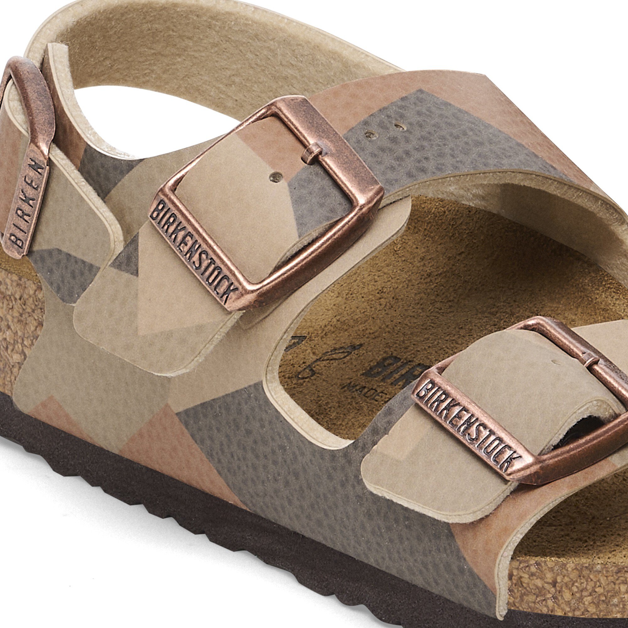 أقصى إحكام، وثبات، ومقاس مثالي! يقدم صندل ميلانو من بيركنستوك كل هذا بفضل تصميمه الصغير المزوّد بشريط حول الكاحل، حتى أثناء اللعب الصاخب. يتميز هذا الإصدار برسومات هندسية. الجزء العلوي مصنوع من مادة بيركوفلور الاصطناعية اللطيفة على البشرة والمتينة.