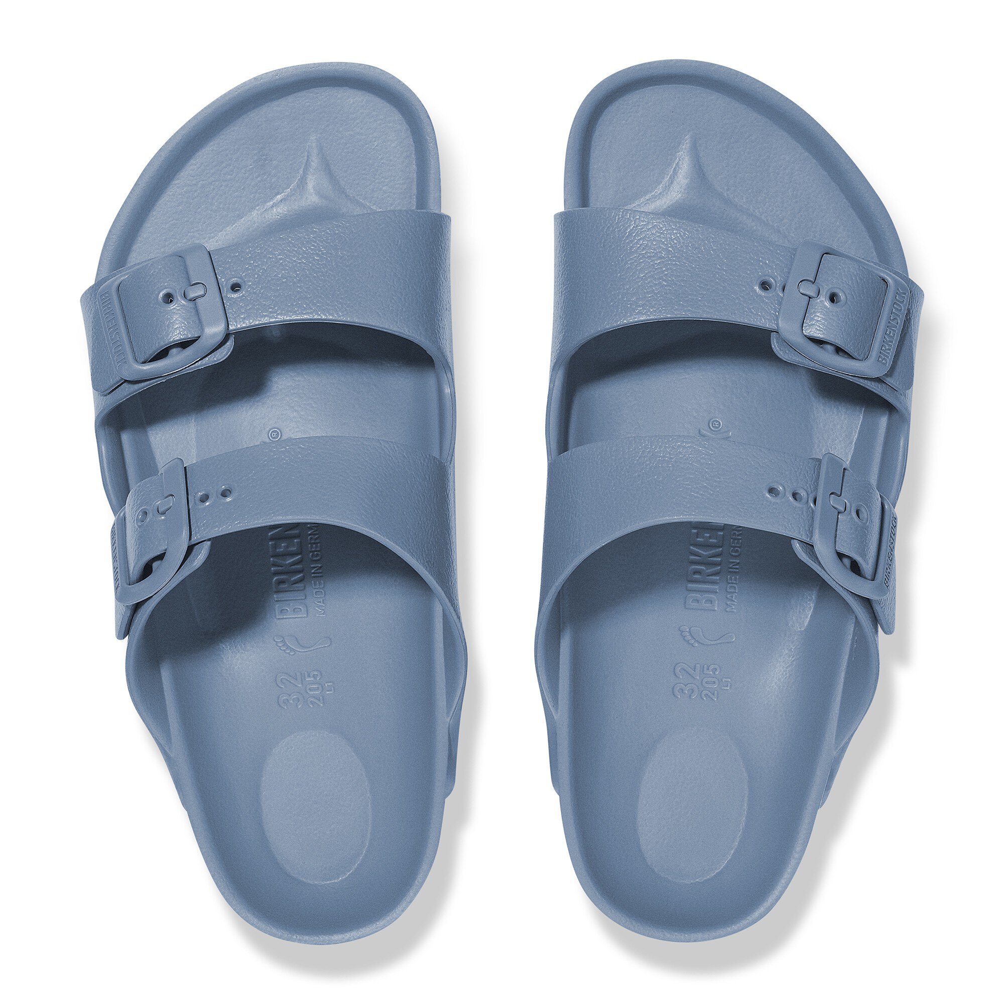 The BIRKENSTOCK Arizona is a genuine classic that has been delighting wearers with its timeless design for decades. The two-strap model fits kids’ feet perfectly – even during boisterous play! Modeled on the cork sandal, this version is made from EVA. The high-quality, odor-neutral EVA has been tested for harmful substances and combines numerous positive attributes. It is ultra lightweight, highly elasticated, waterproof, skin-friendly – and offers the comfort you have come to expect from BIRKENSTOCK.