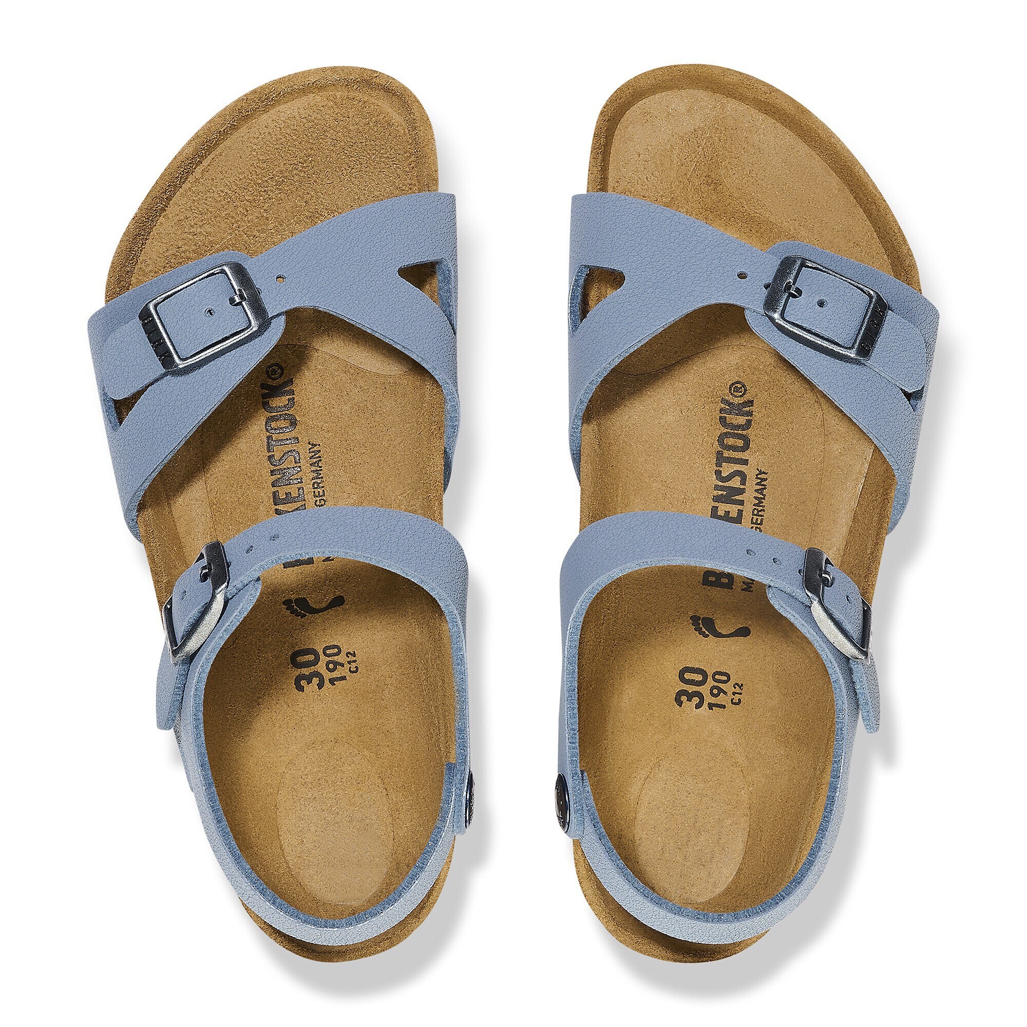 The BIRKENSTOCK Rio is a sporty, elegant sandal with an ankle strap that offers reliable and comfortable grip – also during rough-and-tumble play. The upper is made from the skin-friendly, hard-wearing synthetic material Birko-Flor® in a sophisticated nubuck look which boasts a texture and color that could almost be mistaken for real leather.