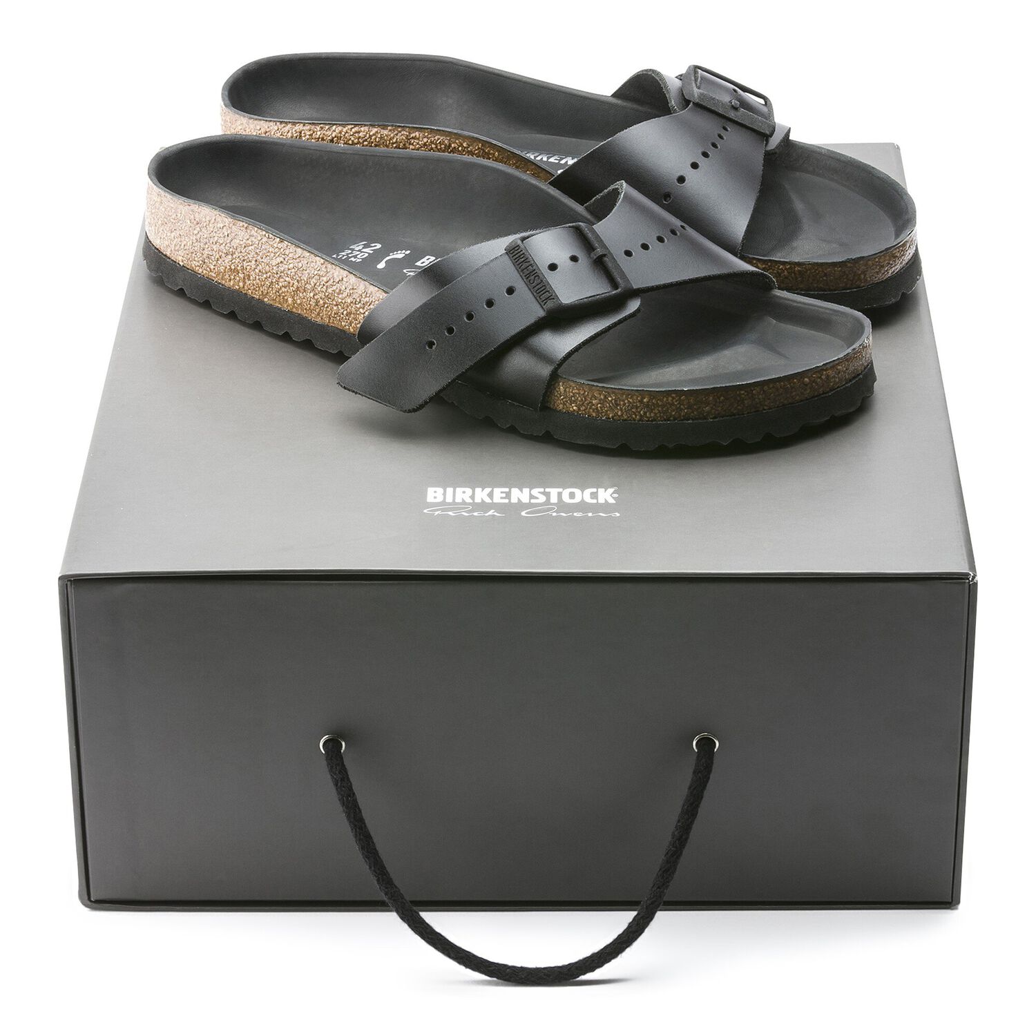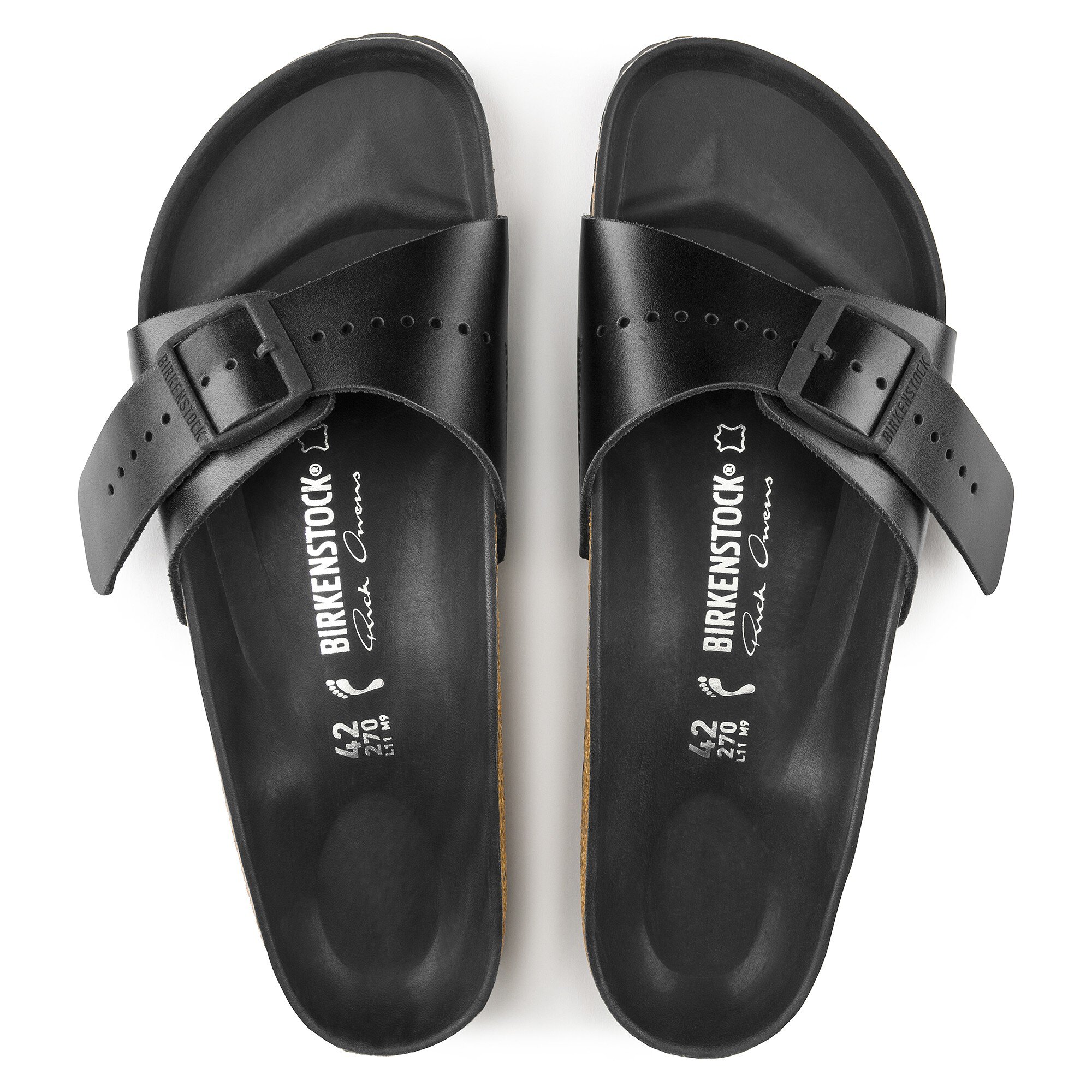 Rick Owens liebt die subtile Übertreibung. Im Falle des Madrids, dem Klassiker des minimalistischen BIRKENSTOCK Designs, verlängerte Owens den Riemen so, dass er nahezu den Boden berührt. Dennoch bleibt die verstellbare Funktion erhalten. Für mehr Eleganz sorgt das hochwertige Glattleder: weich und trotzdem robust, glatt aber mit einzigartiger Struktur garantiert es ein einmaliges Tragegefühl. Das Ergebnis: ein dezent theatralischer Look, dessen Raffinesse im Detail steckt.