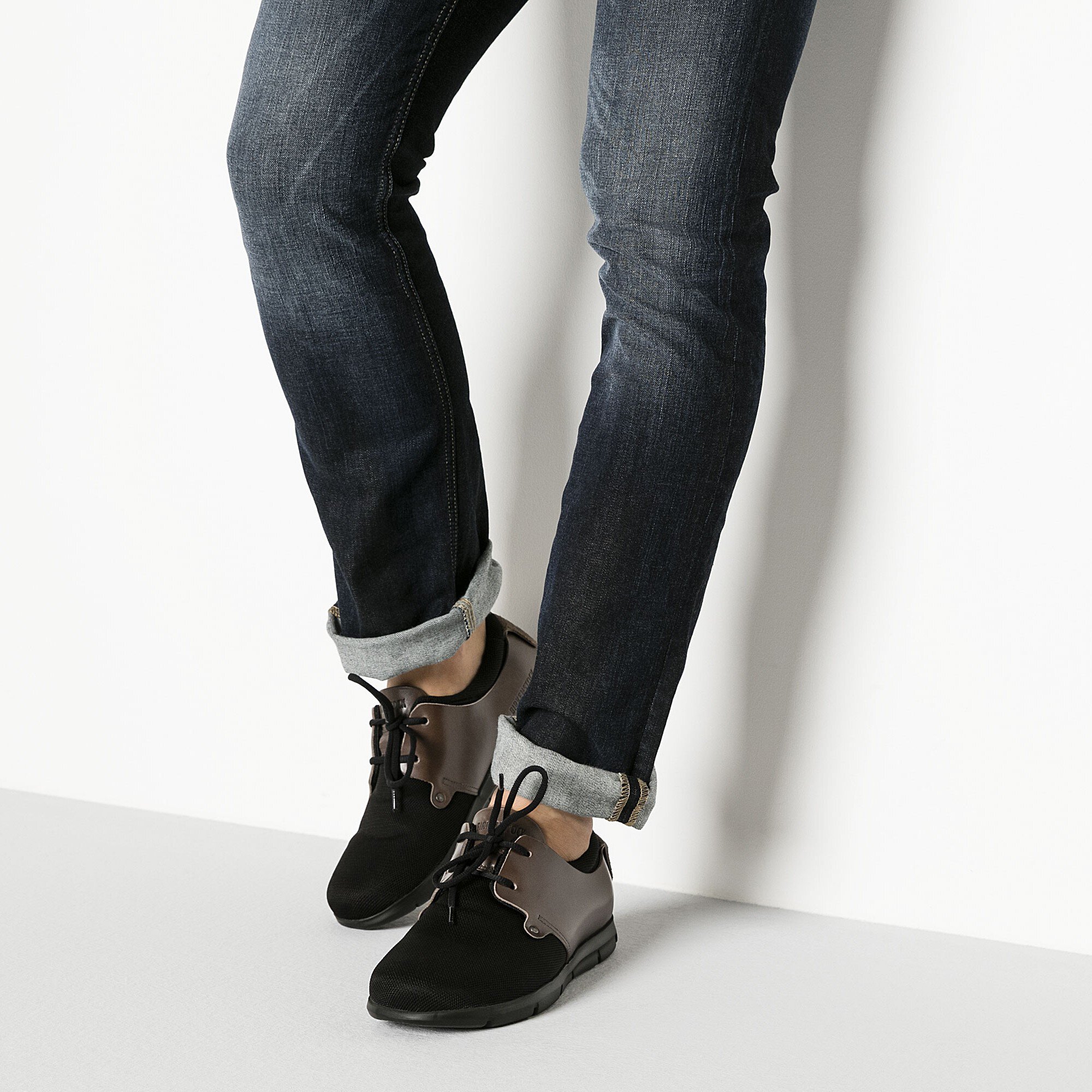 aus. Die intelligente, nahezu nahtfreie Konstruktion dieses besonders leichten, strapazierfähigen Modells besteht aus einer Kombination aus hochwertigem Pull-up-Leder und robustem, wasserabweisendem Mesh-Material (Textil) im Vorfußbereich. Der farblich kontrastierende Ledereinsatz ist mit jeweils einer Niete am vorderen Schaftteil befestigt. Ein optischer Blickfang ist das an der Ferse umgestülpte Lederteil mit zwei weiteren, kleineren Nieten. Die BIRKENSTOCK Logo-Prägung an der Fersenkappe und an der Lasche verstärkt den Wiedererkennungswert.