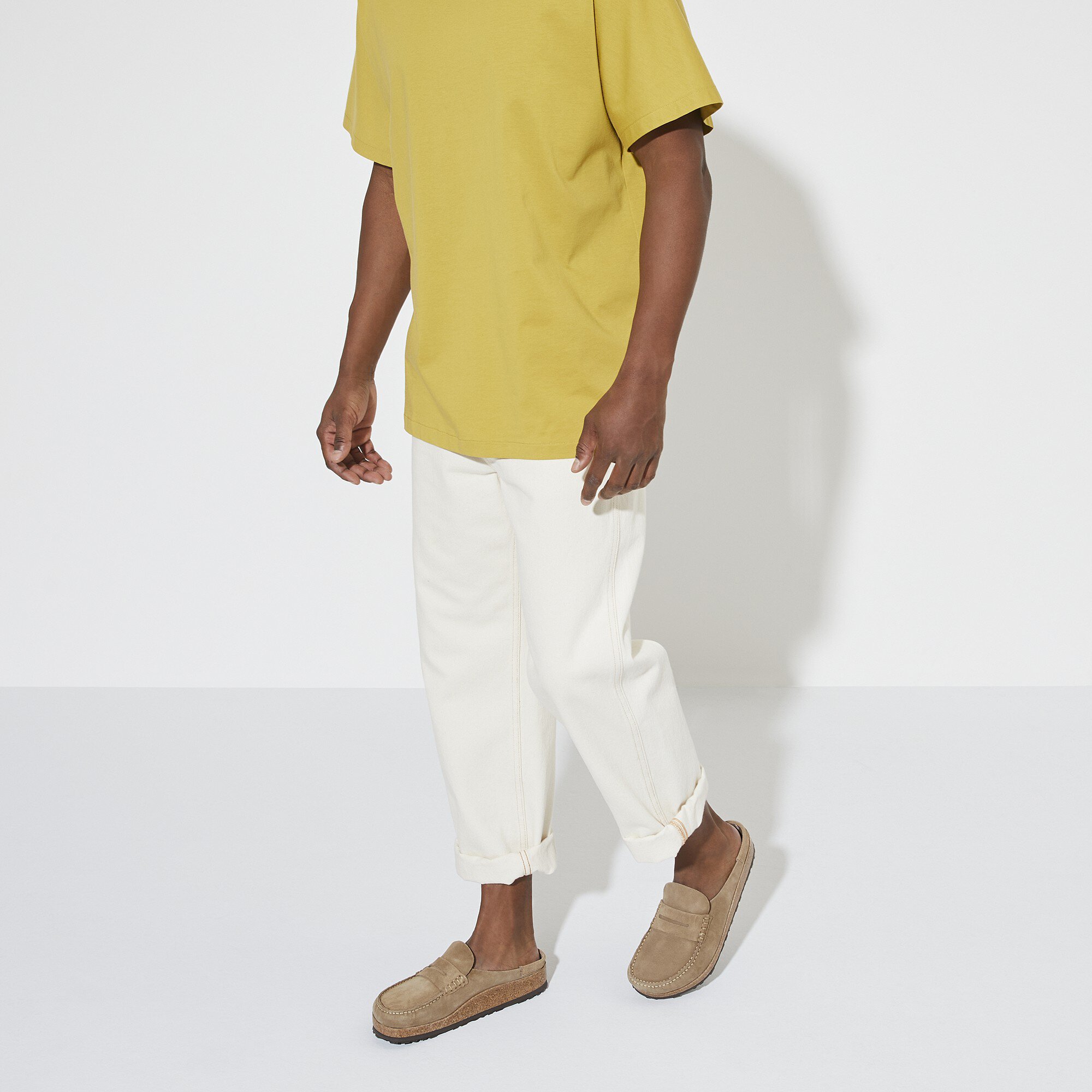 Der BIRKENSTOCK Naples ist das männliche Pendant zum beliebtem halboffenen Clog Buckley. Der Mokassin-Stil mit auffälliger Naht verleiht der Sandale einen markanten, maskulinen Look. Die Sohle sorgt dank ihrer zwei Komponenten für einen sicheren und bequemen Stand. Sie besteht aus einer dämpfenden Zwischensohle aus EVA sowie einer Laufsohle aus echtem Gummi. Für ein natürliches Design sorgt das Obermaterial aus besonders weichem Veloursleder, das sich wie eine zweite Haut an den Fuß anschmiegt.