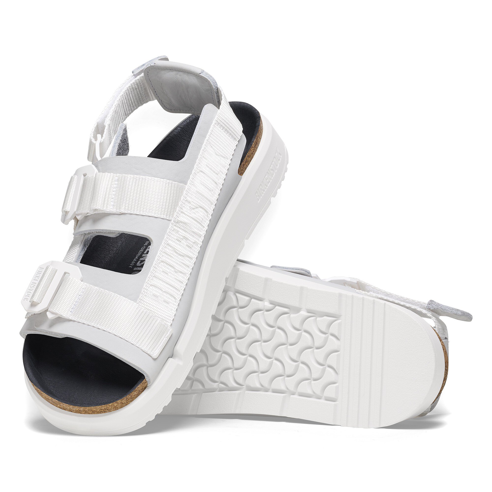- Details: zwei Riemen mit jeweils einer individuell verstellbaren Schließe; Fersenriemen; farblich abgestimmte Details