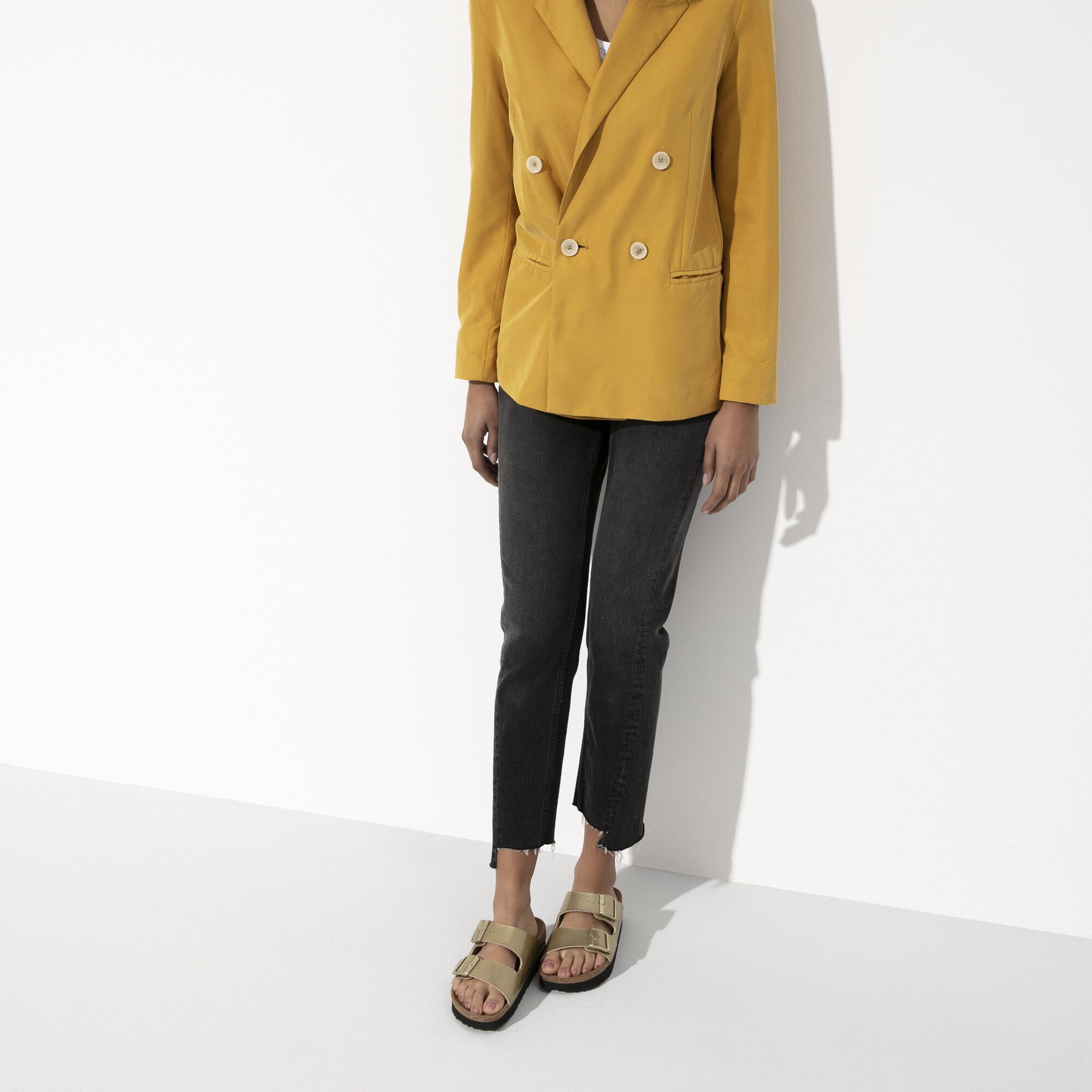 Le modèle Arizona est un véritable classique. Ici, Papillio présente la sandale à deux brides avec une semelle à plateau très tendance. Le biseau permet un confort de marche maximal. Cette sandale a été réinterprétée dans un look métallique brillant. La matière extérieure est fabriquée en Birko-Flor®, une matière synthétique résistante et agréable sur la peau.