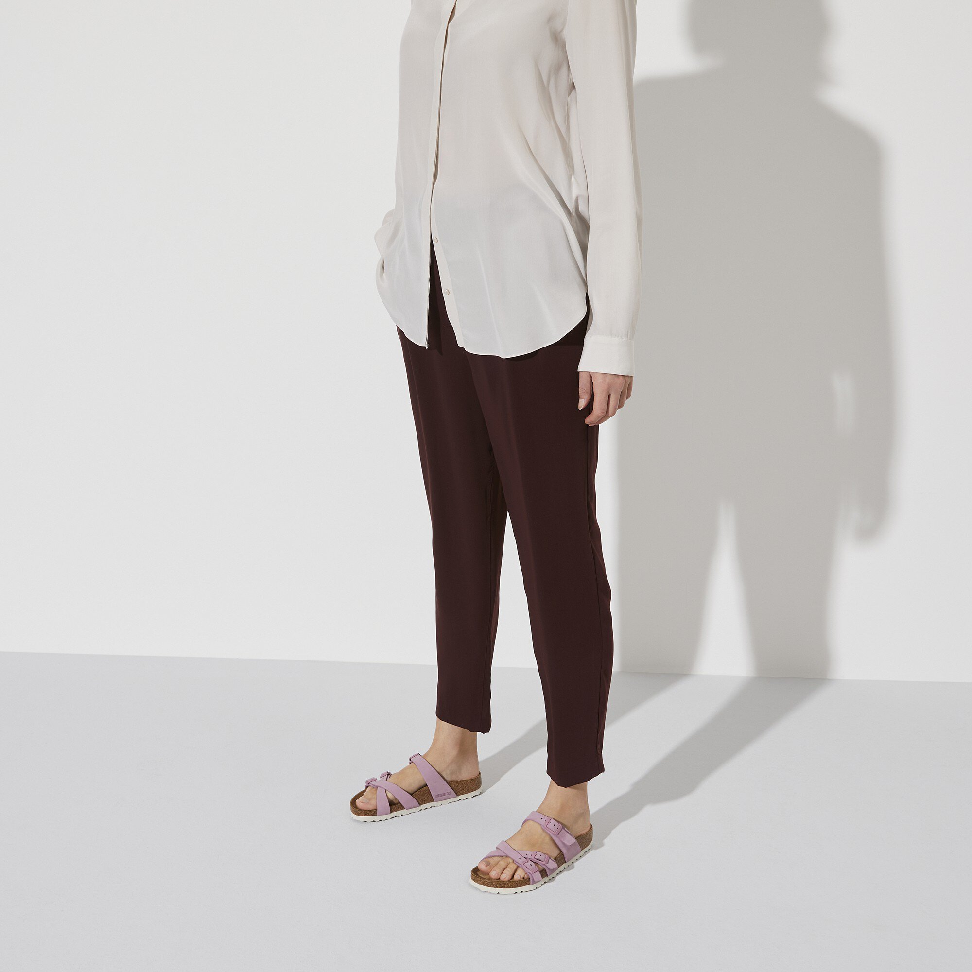 Natural leather can be recognized by its untreated surface. BIRKENSTOCK purposely does not treat surface grains and other characteristic features. BIRKENSTOCK uses sturdy leather with a thickness of 2.8 to 3.2 millimeters as upper material.