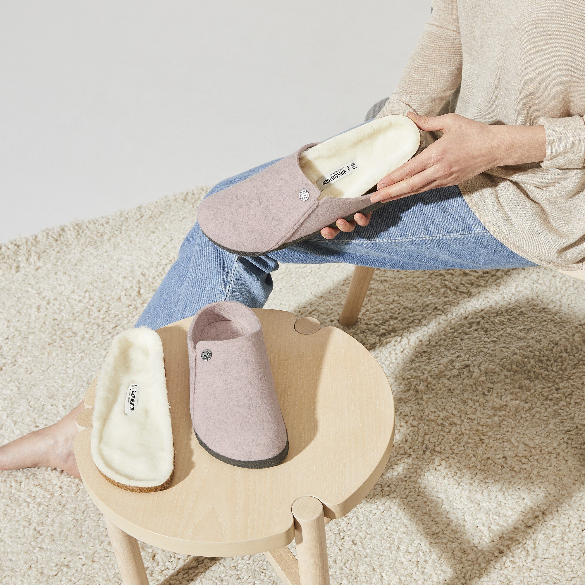 The BIRKENSTOCK Zermatt is our first true slipper. It features our iconic cork latex footbed, and to keep you extra cozy, it’s fully lined in genuine shearling that will keep your feet warm all winter long. The upper consists of soft genuine wool.