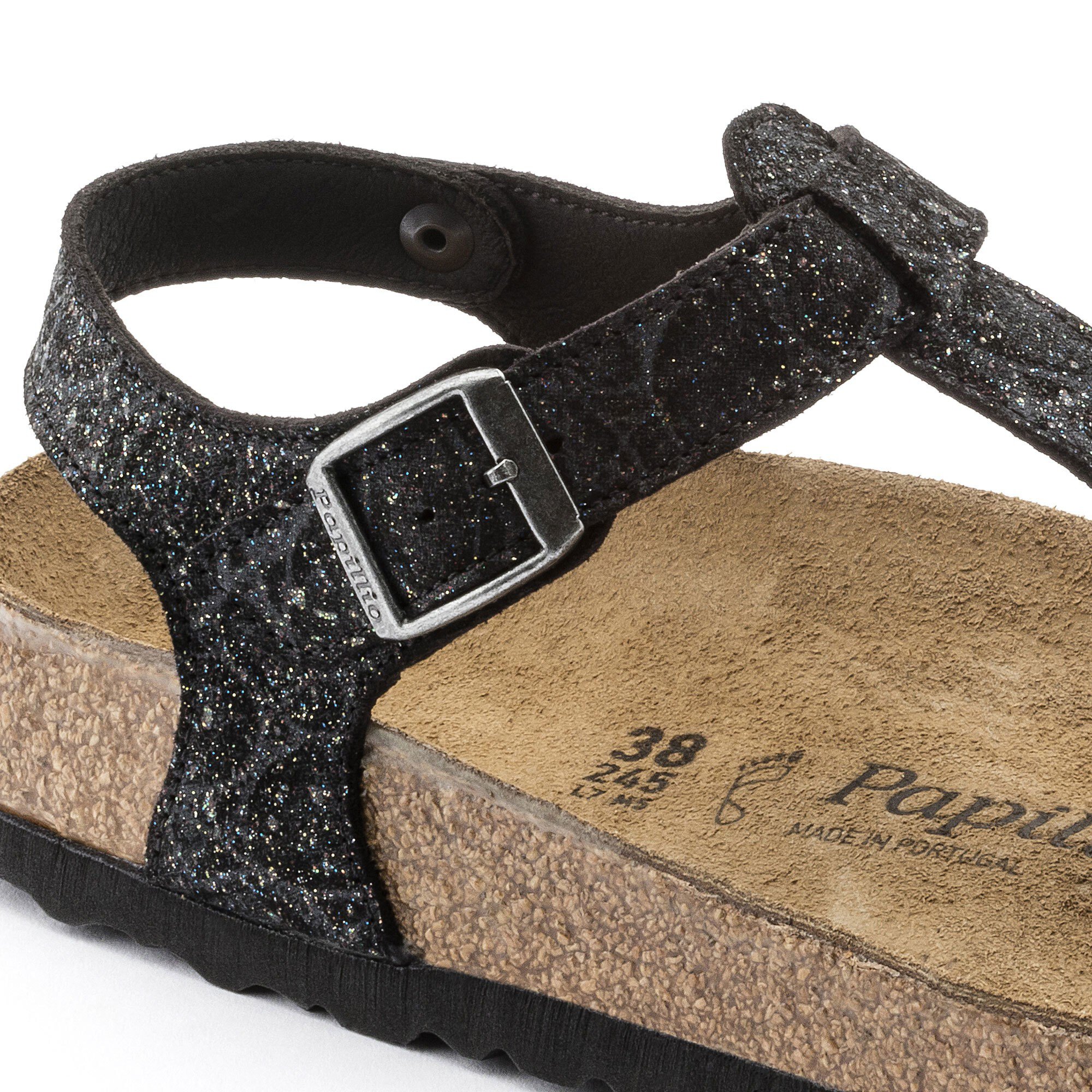 The Kairo is a classic model that delivers maximum comfort when walking and secure grip. Here, Papillio presents the thong sandal with a backstrap in a new, fresh look. The elegant crocodile skin embossing with a subtle glitter effect is what gives this version its very own character that will enhance any outfit. The upper is embossed natural leather.
