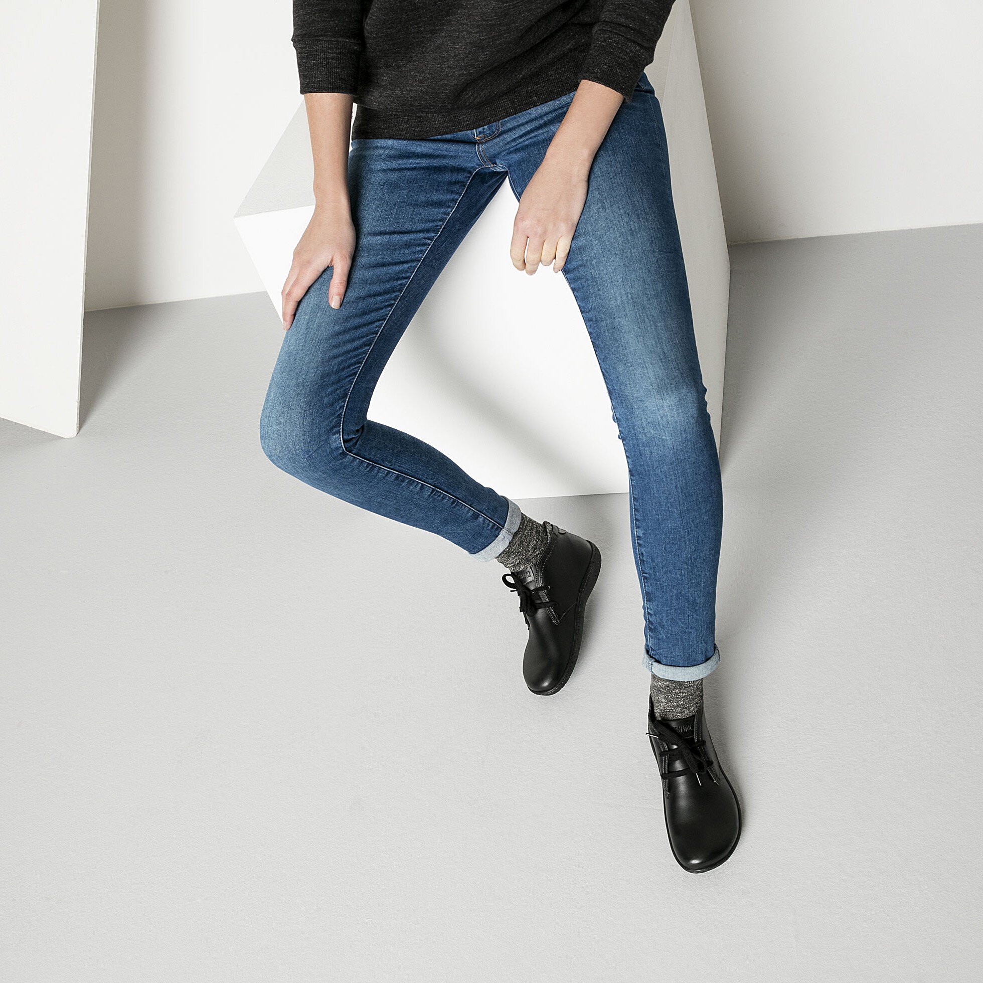 A natural rolling motion for a relaxed gait. This is the guiding principle behind the BIRKENSTOCK Scarba lace-up ankle boot. This sporty, clean-cut model is made of high-quality, lightly oiled and exceptionally hard-wearing pull-up leather. The slightly asymmetrical last corresponds to the natural form of the foot. Thanks to the two-hole lacing section, the Scarba can also be individually adjusted to the wearer’s feet.