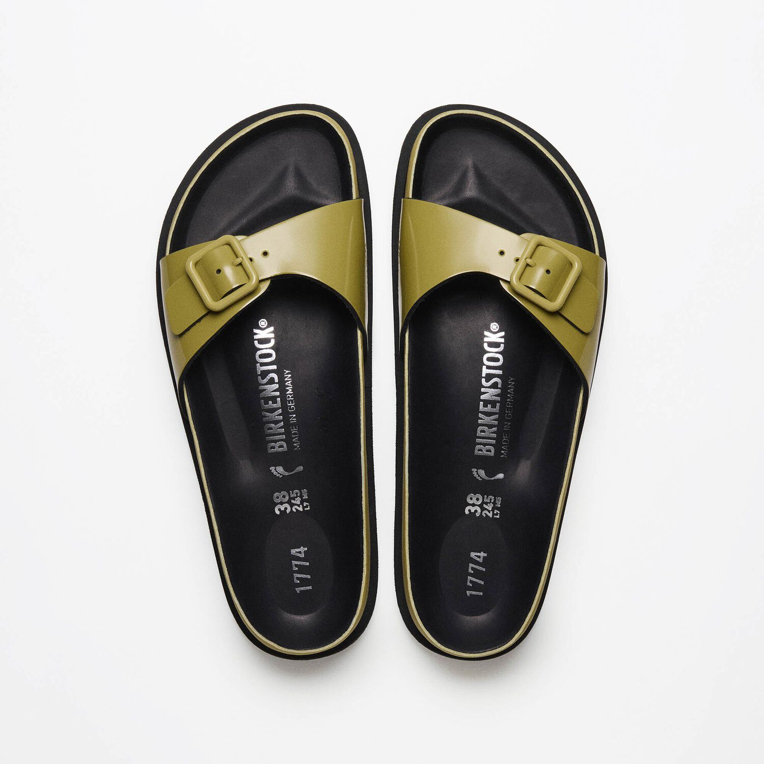 Als Neuinterpretation unseres legendären Madrid präsentiert sich dieses Modell der neuen 1774-Kollektion aus weichem Lackleder mit Hochglanz-Finish. Diese exklusive Variante des klassisches Einriemers verkörpert die Essenz des BIRKENSTOCK Designs mit hochwertigen Materialien und unerreichter Handwerkskunst. Das Fußbett ist mit edlem, schwarzem Leder überzogen und verleiht diesem Modell einen Hauch von Luxus. Feine Details und die dezente, farblich abgestimmte Dornschließe machen diese Sandale besonders elegant.