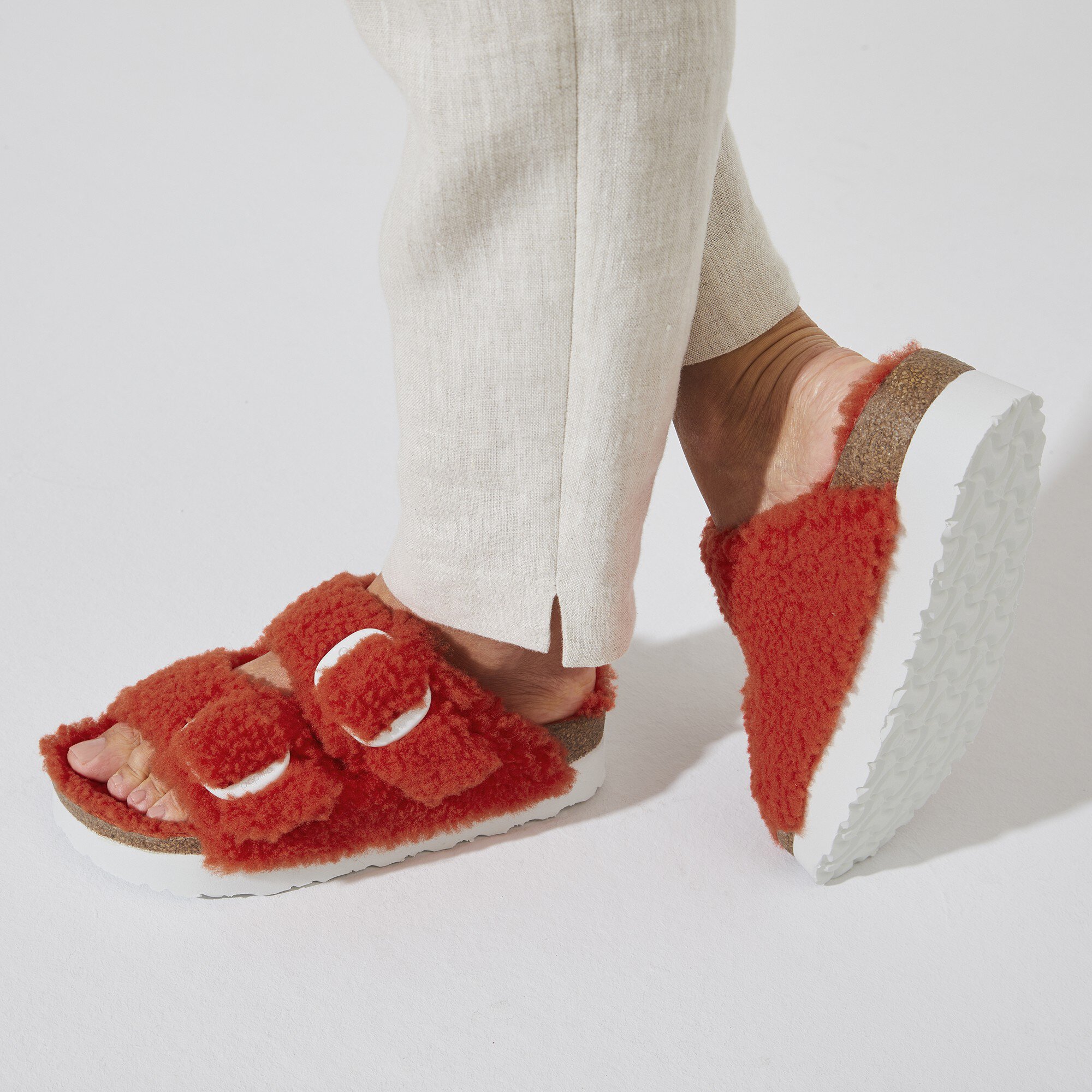 Der Arizona ist ein echter Klassiker, der Männer und Frauen seit Jahrzehnten begeistert. Hier präsentiert Papillio den Zweiriemer mit einer modischen Plateausohle. Dank des Anschliffs wird maximaler Laufkomfort erzielt. Diese Variante zeigt sich mit einer warmen Lammfell-Fütterung in Teddy-Optik sowie mit einer großen, eleganten Dornschnalle. Das Obermaterial besteht aus weichem Teddy-Lammfell mit Mikrofaser Lining.