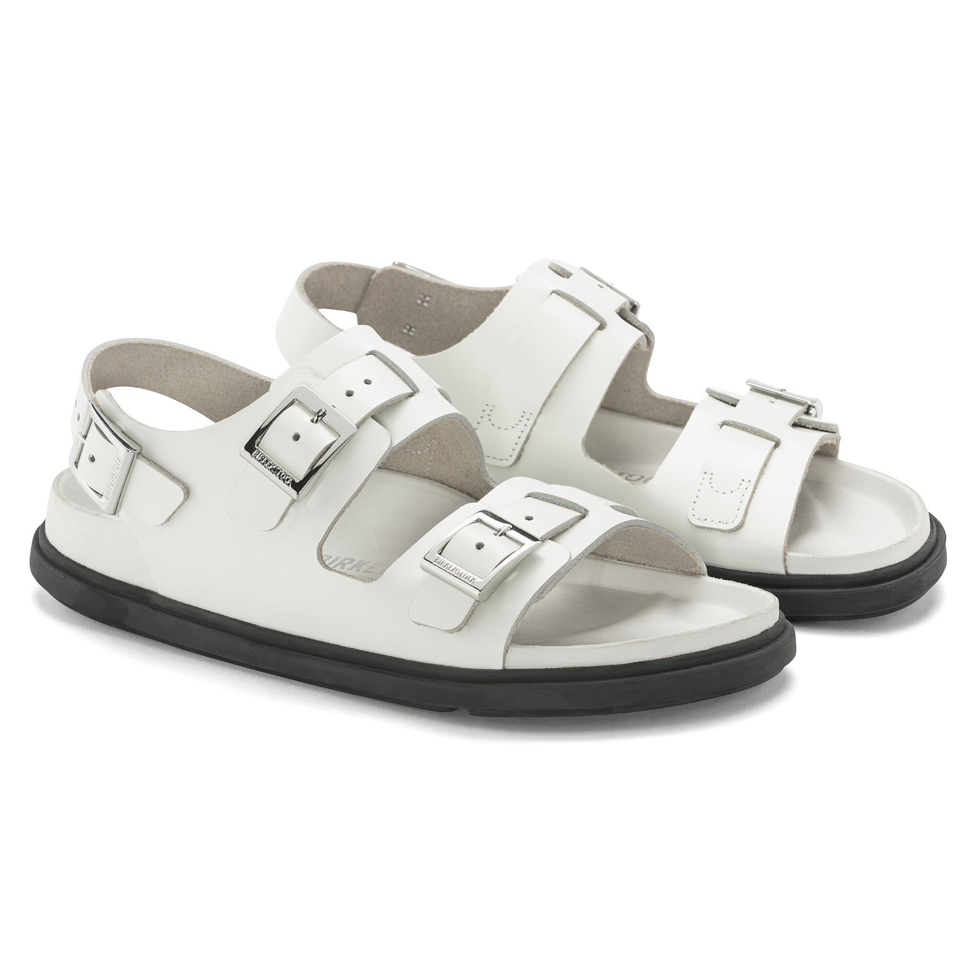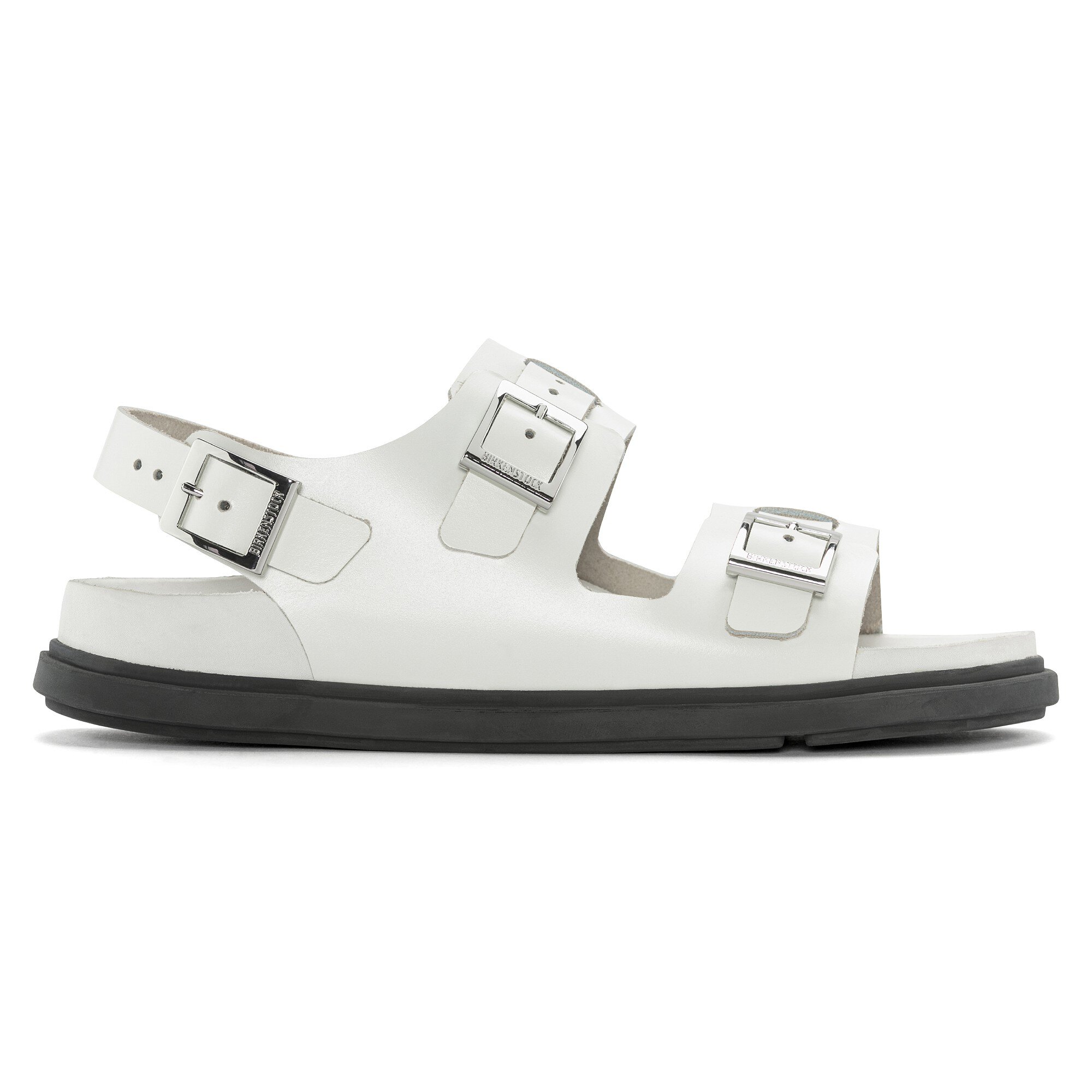 Der BIRKENSTOCK Cannes ist ein puristischer und moderner Style. Er begeistert mit seinem filigranen Premium-Look und femininer Eleganz. Die glänzenden, konvexen Zamak Schnallen garantieren einen besonderen Blickfang. Das Exquisit-Fußbett ist komplett mit weichem Piumato-Leder bezogen und sorgt für einen außergewöhnlich hohen Tragekomfort. Die im Vorderfuß unterbrochene Laufsohle unterstützt den Fuß bei der Abrollbewegung und bietet maximale Flexibilität. Das Obermaterial besteht aus hochwertigem, weichem Naturleder.