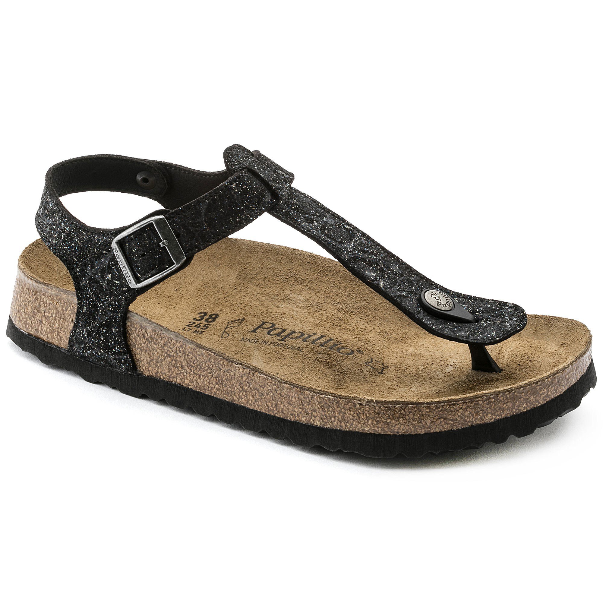 Der Kairo ist ein Klassiker, der für maximalen Laufkomfort und sicheren Halt sorgt. Hier präsentiert Papillio die Zehensteg-Sandale mit Fersenriemen in einem neuen, frischen Look. Die elegante Krokodilleder-Prägung mit subtilem Glitter-Effekt verleiht dieser Variante ihren ganz eigenen Charakter mit dem sie jedes Outfit veredelt. Das Obermaterial ist ein geprägtes Naturleder.