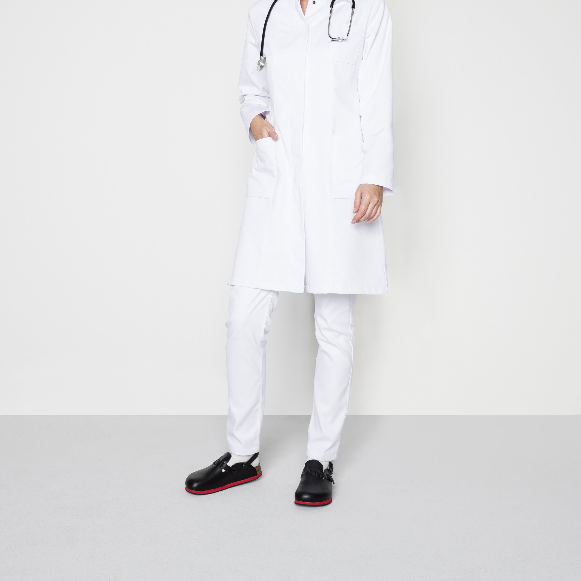 Der Kay SL bietet alle Vorteile der BIRKENSTOCK Klassiker Tokio & Boston kombiniert in einem Modell. Der obere Ristriemen kann bei Bedarf nach hinten umgeklappt werden und bietet dann als Fersenriemen für zusätzlichen Halt. Die Superlaufsohle ist rutschhemmend, rollt ideal ab und zudem öl- und fettbeständig. Ihre Zwischensohle aus EVA verfügt bei der Lederausführung über eine zusätzliche Weichbettung. Sie dämpft dauerhaft und zuverlässig jeden Schritt – auch bei empfindlichen Füßen. Vor allen im medizinischen Bereich ist dieses hohe Maß an Flexibilität und Trittsicherheit gefragt. Alle Superlaufsohlen-Modelle werden nach den Vorgaben der EN ISO 20347:2012 hinsichtlich der Rutschhemmung getestet.