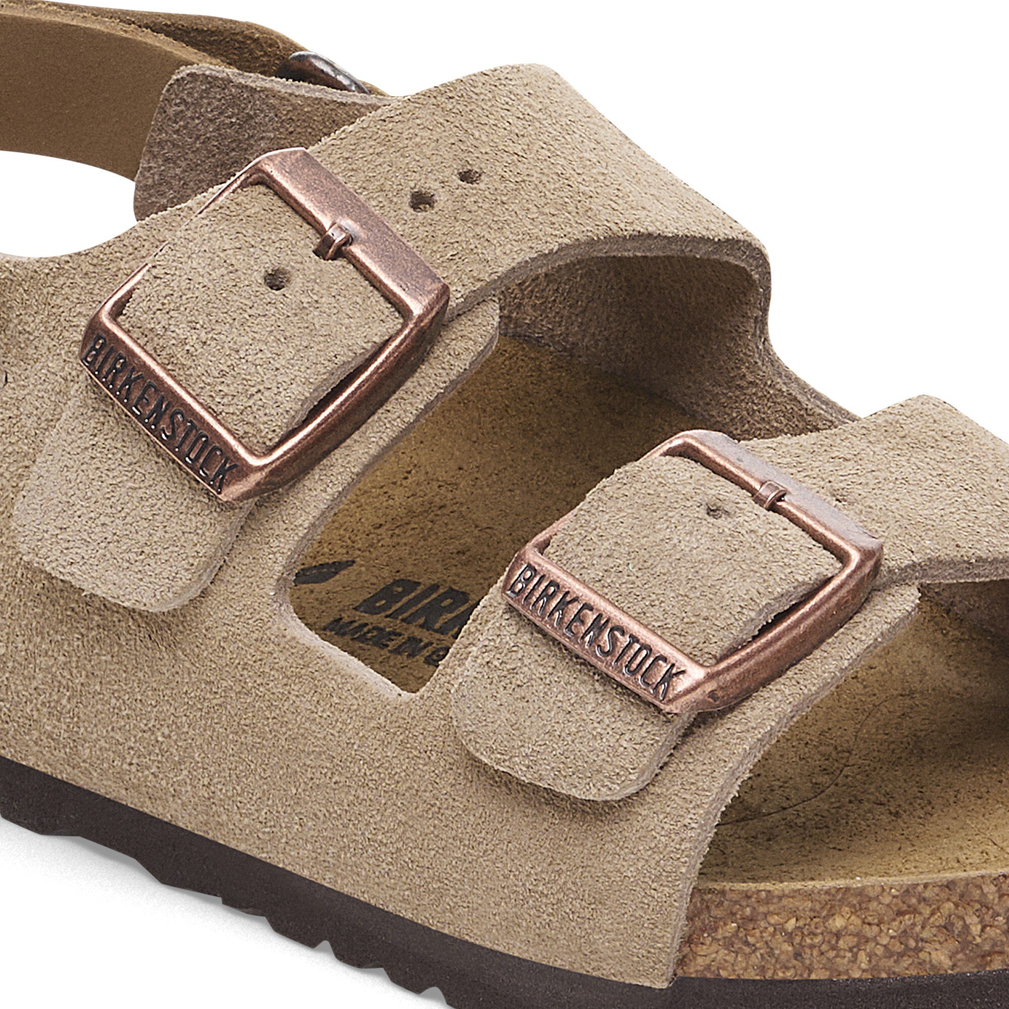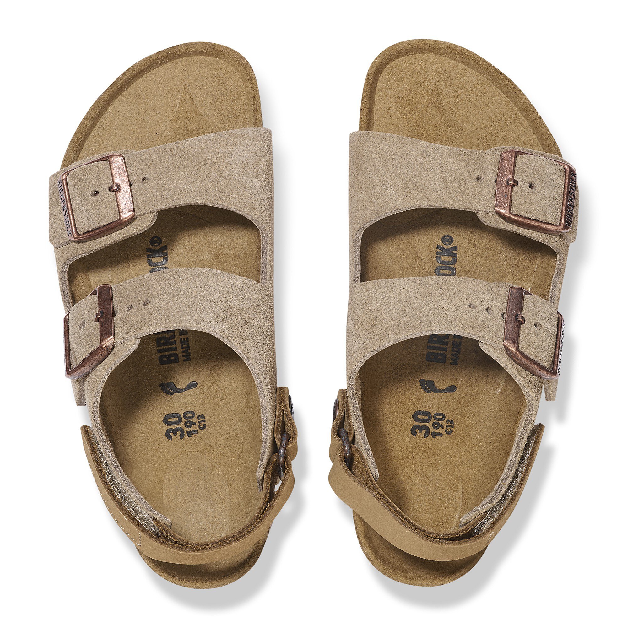 Maximaler Halt, Stabilität und optimaler Sitz! Das alles bietet der BIRKENSTOCK Milano dank seines kompakten Designs mit Fersenriemen – auch beim wilden Toben! Das Obermaterial besteht aus besonders weichem Veloursleder, das sich wie eine zweite Haut an den Fuß anschmiegt.