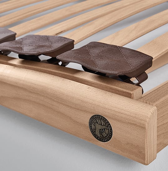 Durch eine besonders softe, integrierte Zone in Lattenrost und Matratze im Bereich der Ferse wird dieser stark beanspruchte Druckpunkt gesondert entlastet. Insbesondere für Rückenschläfer zahlt sich die zusätzlich im Konturschnitt der Matratze eingearbeitete Fersenentlastungszone aus.