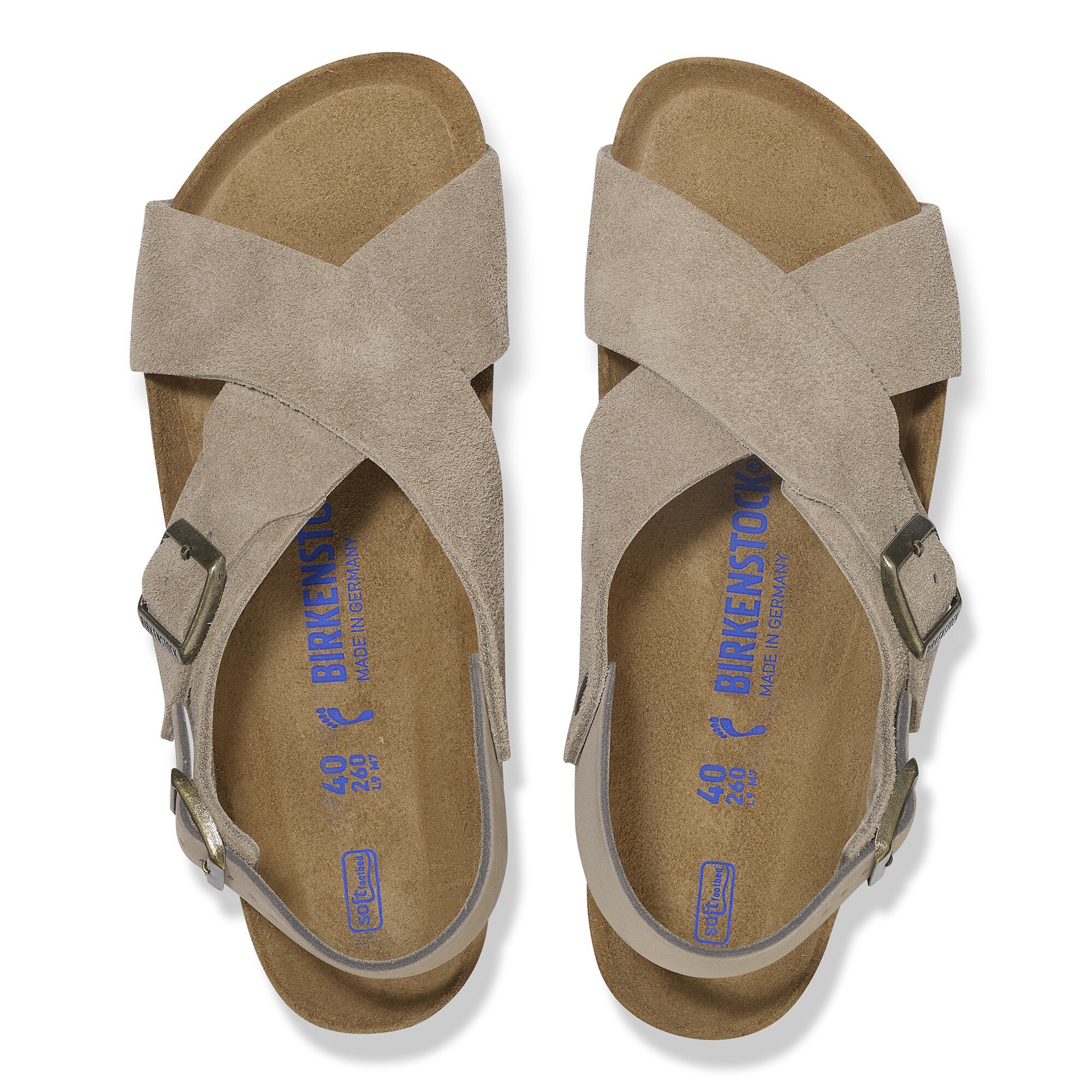 Der BIRKENSTOCK Tulum besticht durch seine sportliche Optik. Überkreuzte Riemen und der Fersenriemen geben der Sandale ihren ganz eigenen, besonderen Look. Das Weichfußbett sorgt dank der zusätzlichen Schaumeinlage für eine Extraportion Tragekomfort und verwöhnt den Fuß – den ganzen Tag. Das Obermaterial besteht aus besonders weichem Veloursleder, das sich wie eine zweite Haut an den Fuß anschmiegt, in Kombination mit hochwertigem Nubukleder.