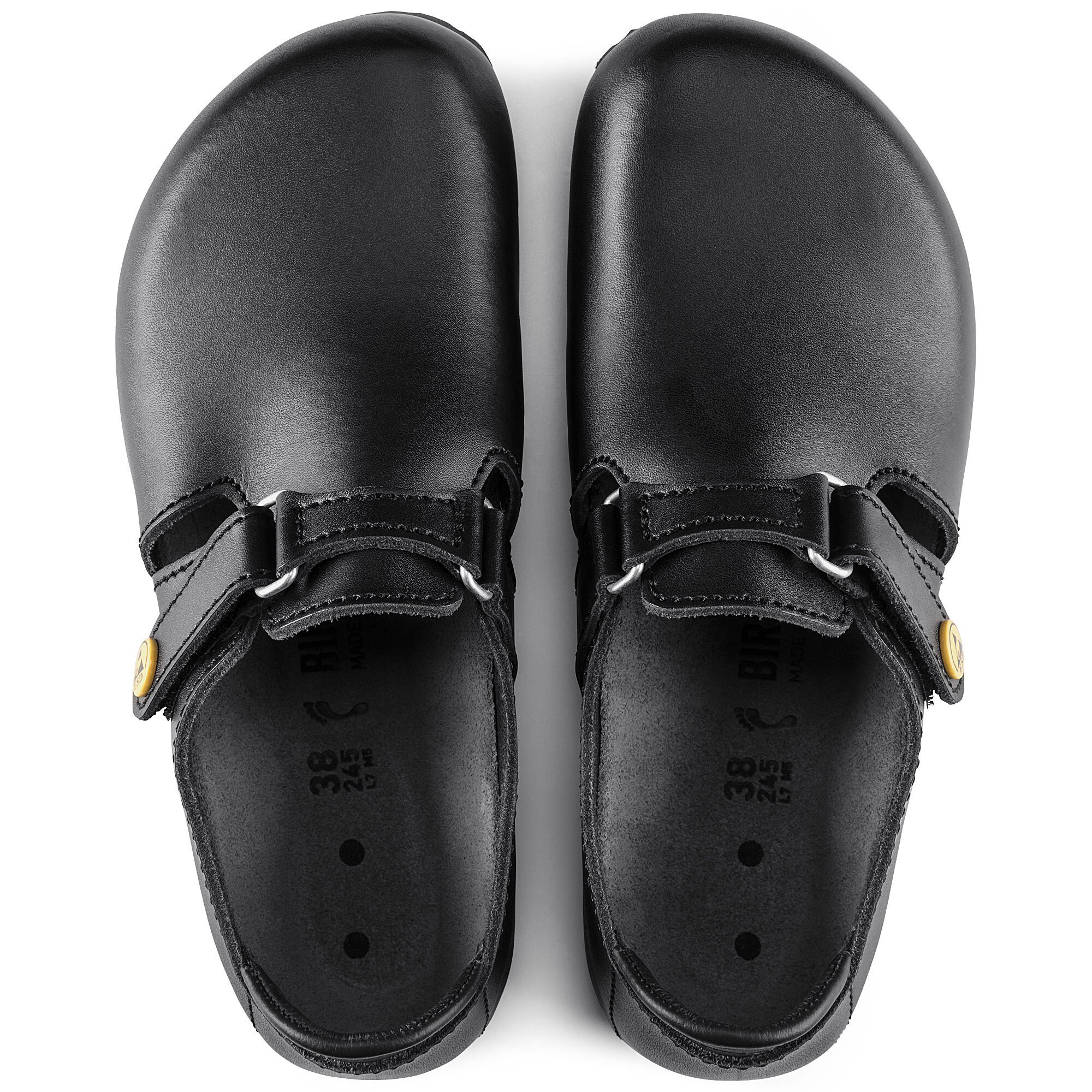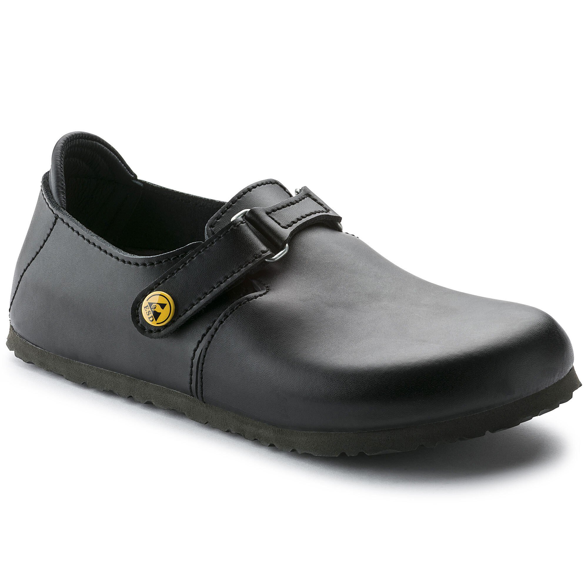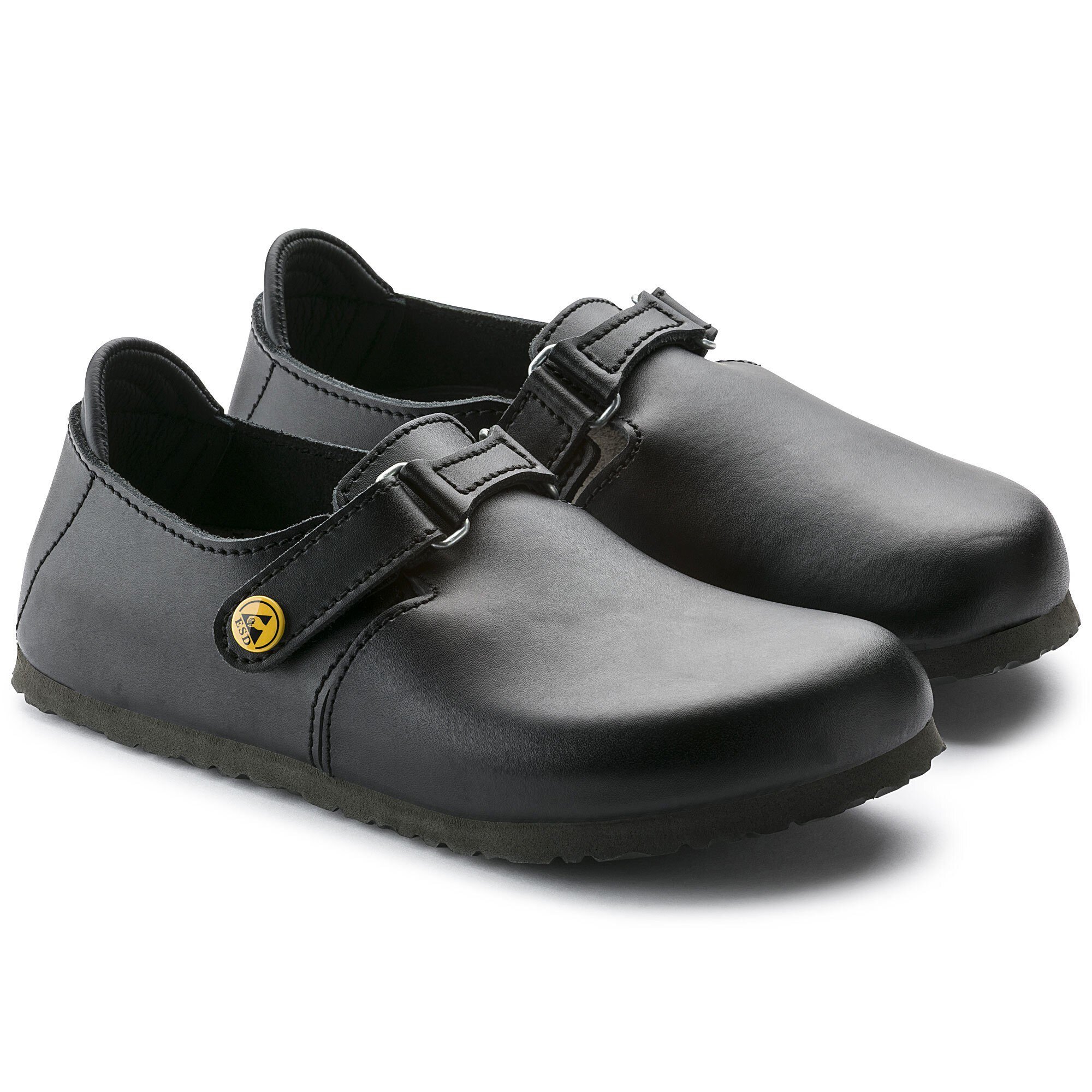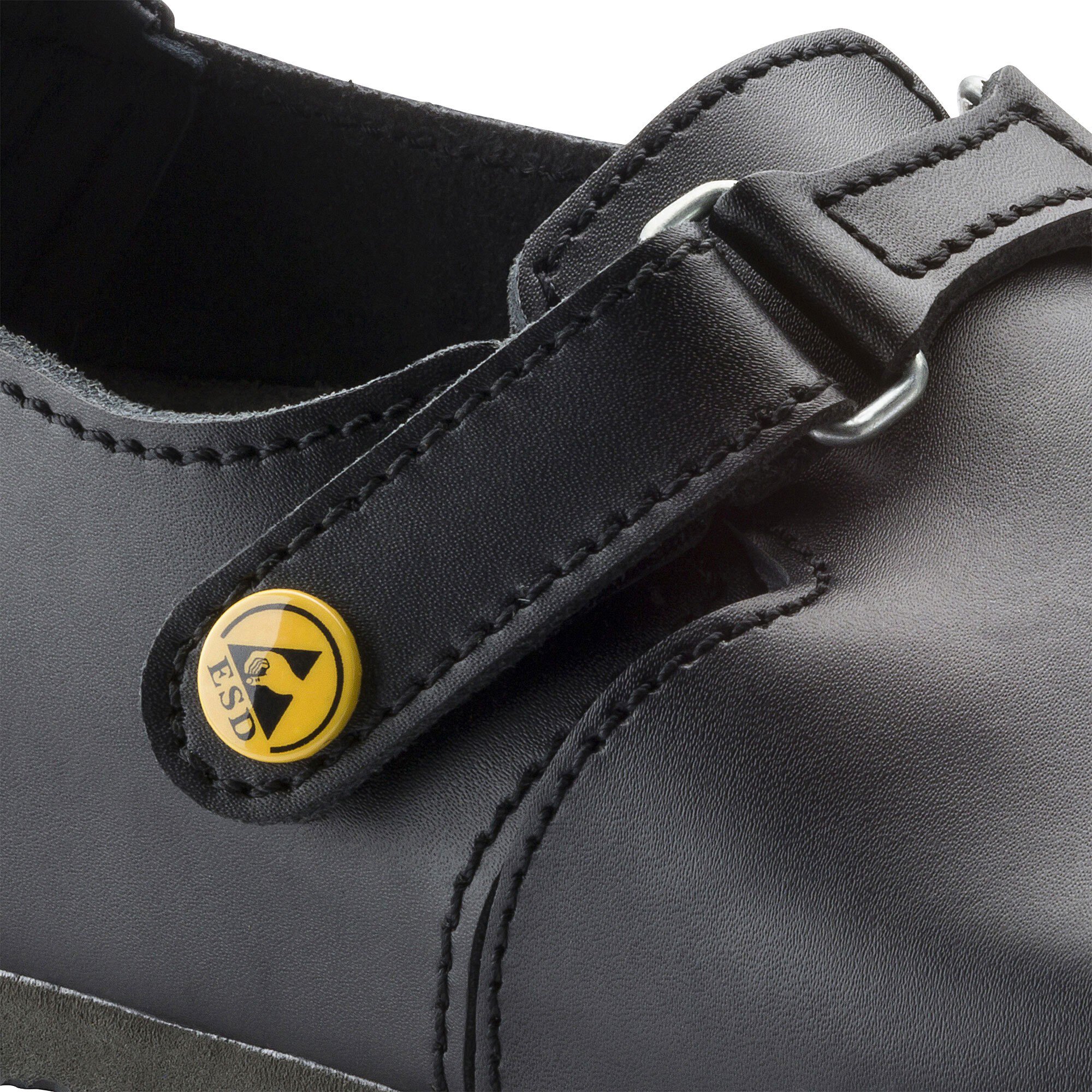 Elektrostatiske opladninger kan beskadige følsomme komponenter i halvlederindustrien. ESD-versionen af modellen Linz sikrer den bedst mulige beskyttelse mod spændingsskader og sikrer en permanent og blød afladning. Den lukkede frontsko er lavet af behagelig kernelæder, beskytter mod slagskader og er særligt nem at rengøre. En frit justerbar vristrem med burrebåndslukning sørger for optimal støtte. Alle BIRKENSTOCK ESD-modeller testes i henhold til specifikationerne i DIN EN 61340 og opfylder kravene i ESD-området fra 1,0 x 105 til 3,5 x 107 Ohm.
