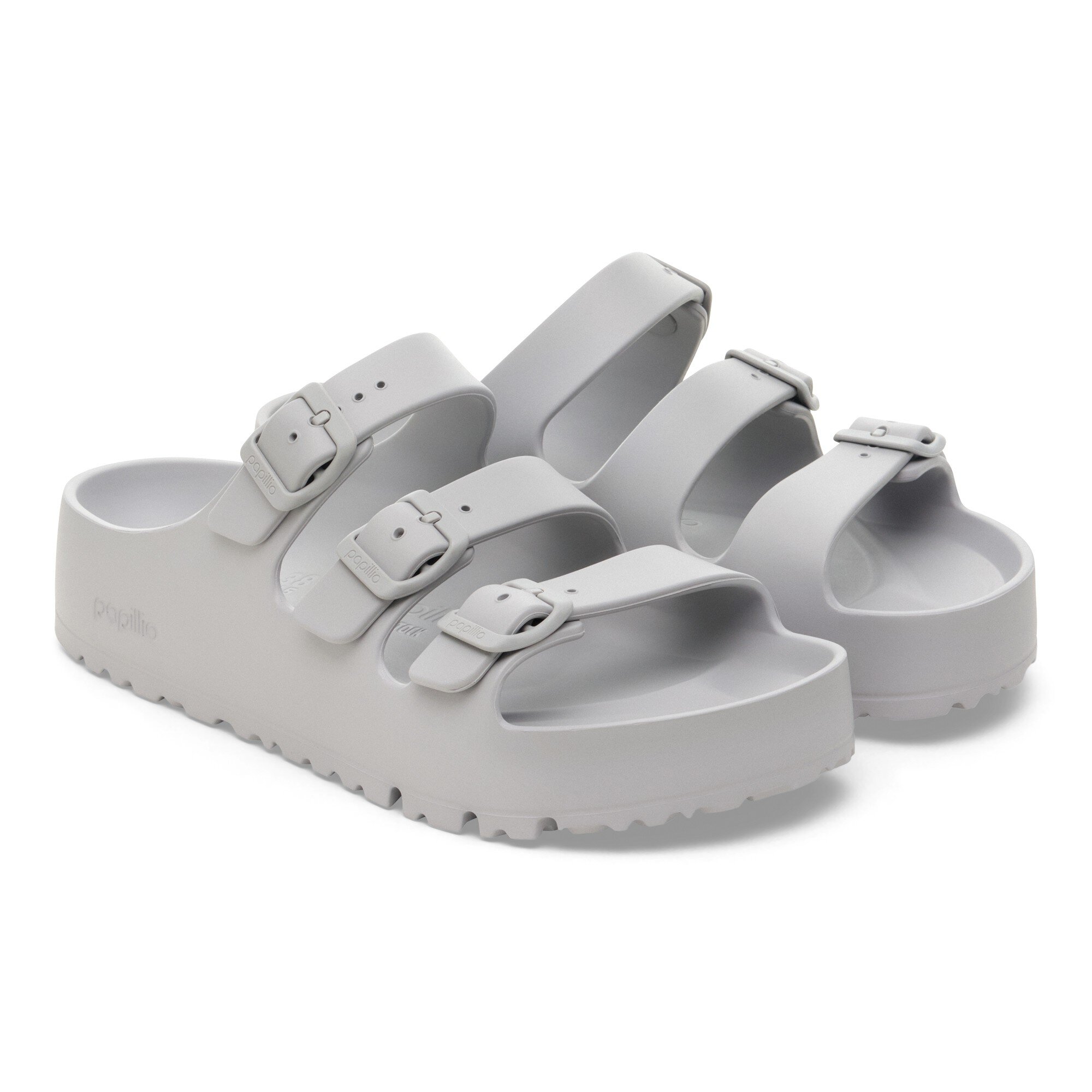 The BIRKENSTOCK Florida is the ideal sandal for anyone who spends a lot of time on their feet. This three-strap sandal offers good grip and maximum comfort. The new platform flex outsole has a wider heel section for increased stability and ideal weight distribution. The updated design with horizontal grooves in the front part improves flexibility and the rolling motion. Modeled on the cork original, this sandal is made from especially light and highly flexible EVA. This high-quality, odor-neutral synthetic material which has been tested for harmful substances is shock-absorbent, water-resistant, and skin-friendly. It is therefore perfect for wearing on the beach, in the garden, or in wellness and spa areas.
