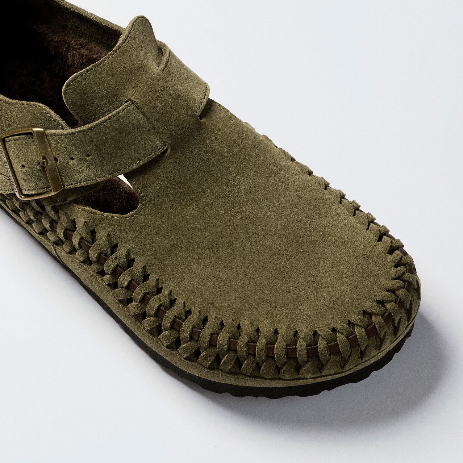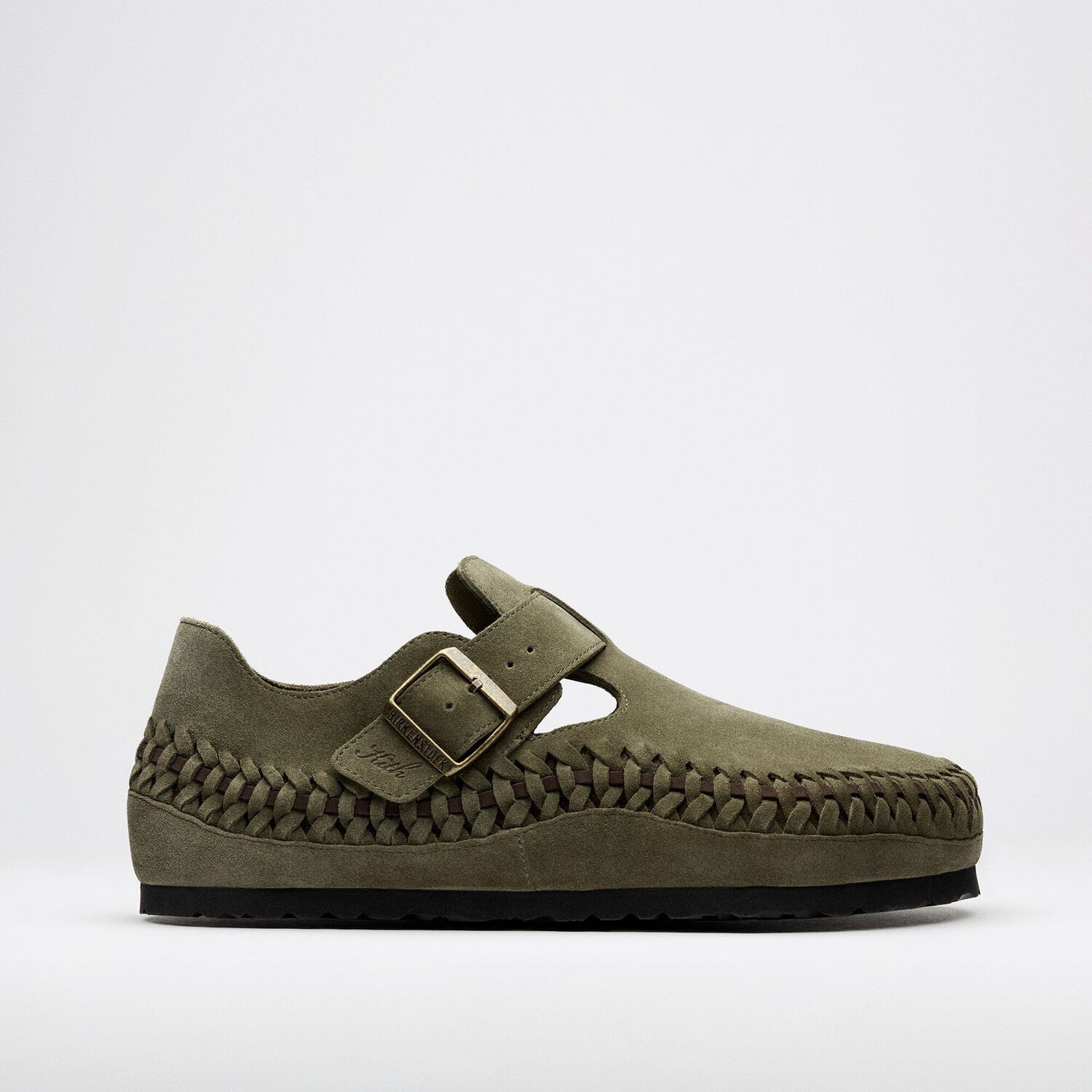 The Kith for BIRKENSTOCK London features a premium suede upper with a hand-braided centrepiece – this adds a unique touch to the classic London silhouette. A buckle strap with Kith script debossing, along with a soft suede collar, enhances its refined look. Our BIRKENSTOCK cork footbed with its EVA outsole ensures optimal comfort, including a Shearling footbed.