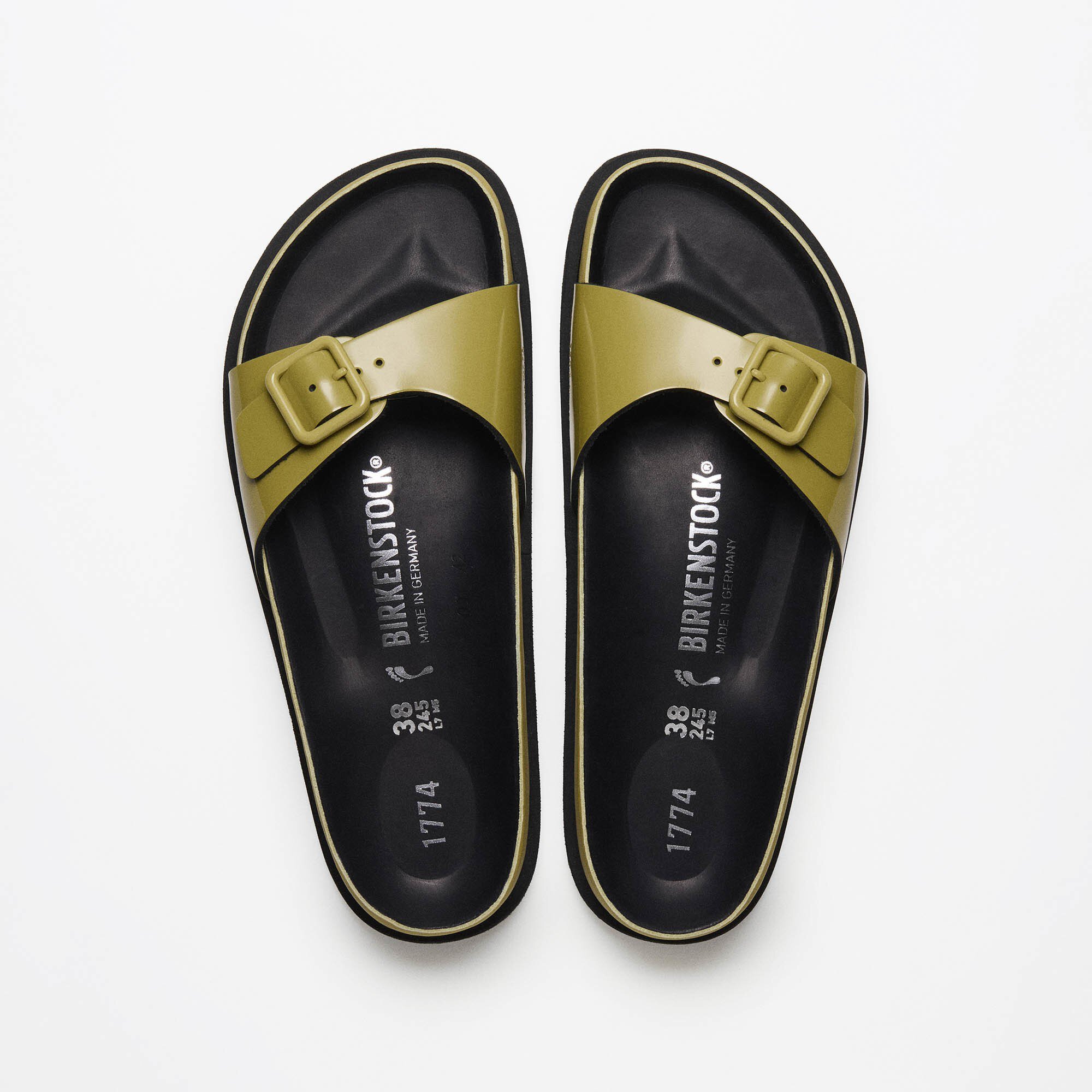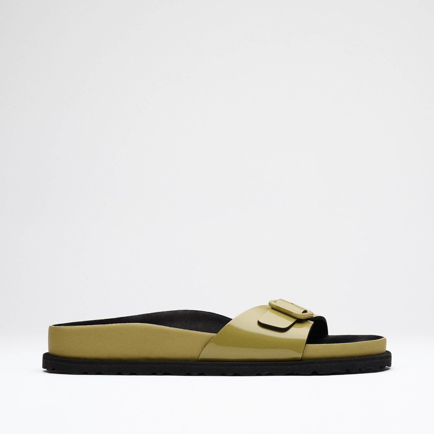 En esta nueva colección 1774 se incluye una reinterpretación de nuestra icónica sandalia Madrid con exquisita y suave piel acharolada y acabado brillante. Este nuevo diseño de las Madrid celebra la esencia del diseño BIRKENSTOCK con materiales selectos y una maestría inigualable. La plantilla, revestida con piel negra de primera calidad, proporciona una sensación inconfundible de lujo. Sus delicados detalles y la hebilla minimalista en color a juego dotan a estas sandalias de un aspecto sofisticado y elegante.