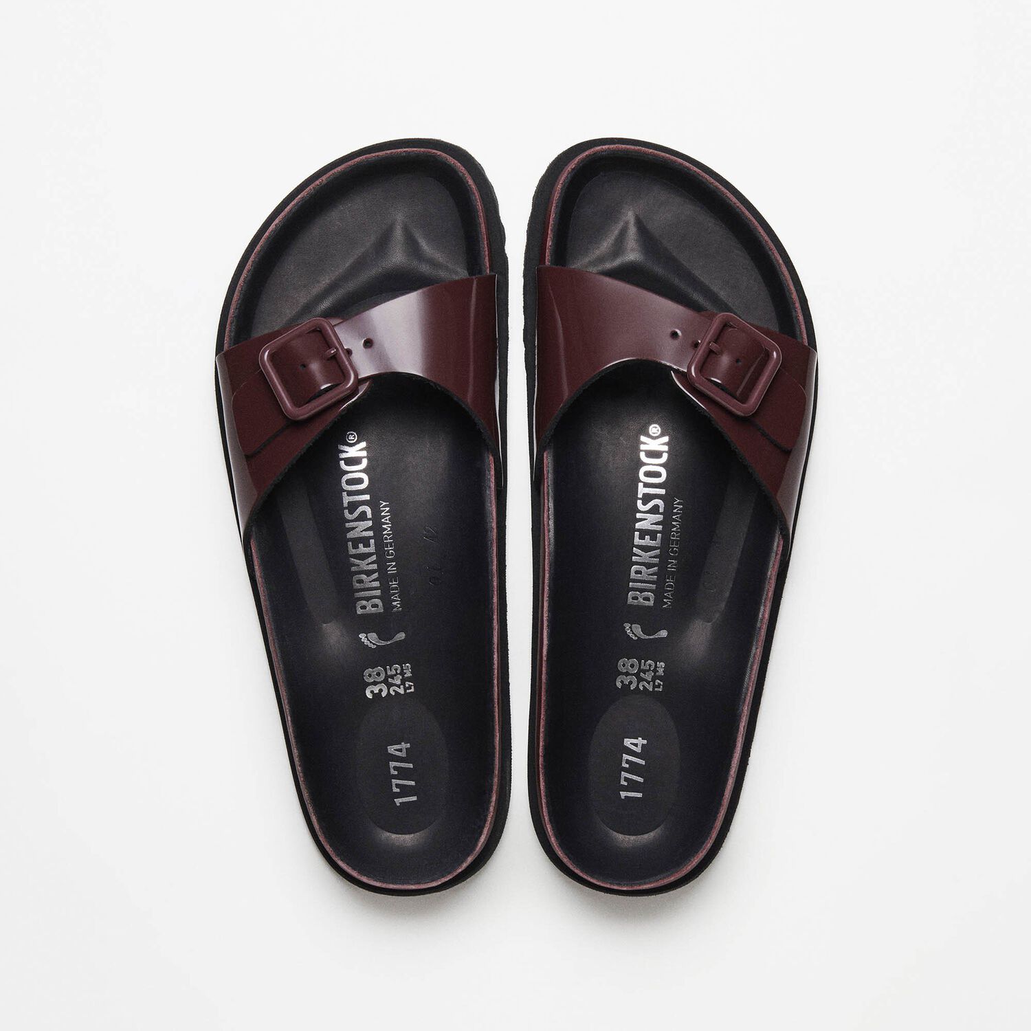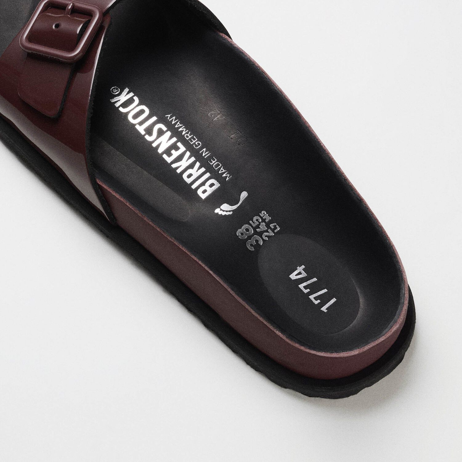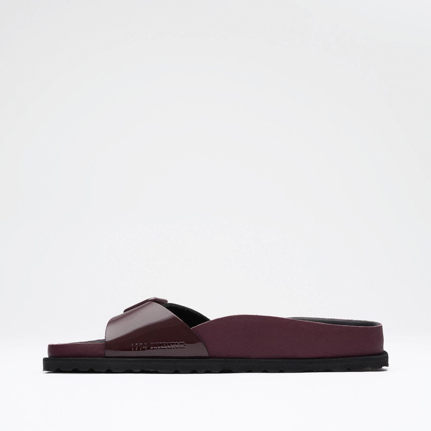 En esta nueva colección 1774 se incluye una reinterpretación de nuestra icónica sandalia Madrid con exquisita y suave piel acharolada y acabado brillante. Este nuevo diseño de las Madrid celebra la esencia del diseño BIRKENSTOCK con materiales selectos y una maestría inigualable. La plantilla, revestida con piel negra de primera calidad, proporciona una sensación inconfundible de lujo. Sus delicados detalles y la hebilla minimalista en color a juego dotan a estas sandalias de un aspecto sofisticado y elegante.