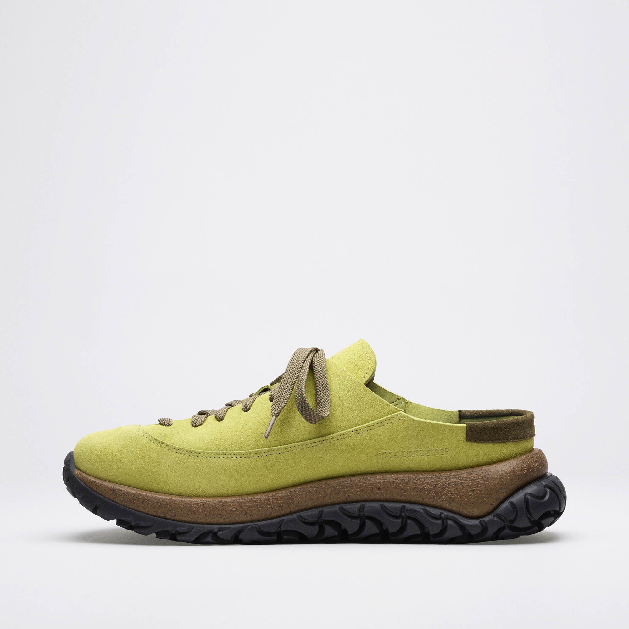 The Uerzell is a minimalist slip-on mule crafted from soft suede, featuring sleek lines, delicate lacing, and a signature exposed cork midsole a subtle nod to BIRKENSTOCK’s sandal heritage. Sculptural yet restrained, it’s offered in tonal shades of taupe, lime, and maroon making for a quietly confident statement.