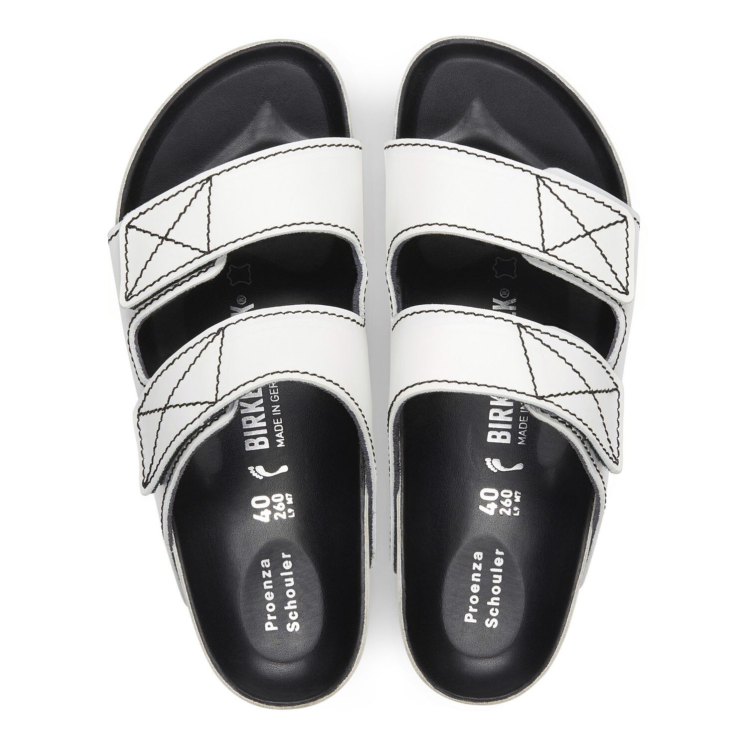 With minimal but striking details BIRKENSTOCK’s iconic Arizona is injected with urbanism and luxe: high class leather contrasts with saddle stiches, while the cork sole is covered purely in smooth nappa leather offering an even more uniformed, uninterrupted look. To honor Proenza Schouler’s love for the classic sneaker detail, for the first time ever BIRKENSTOCK introduces a hook&loop closure to replace the buckle.