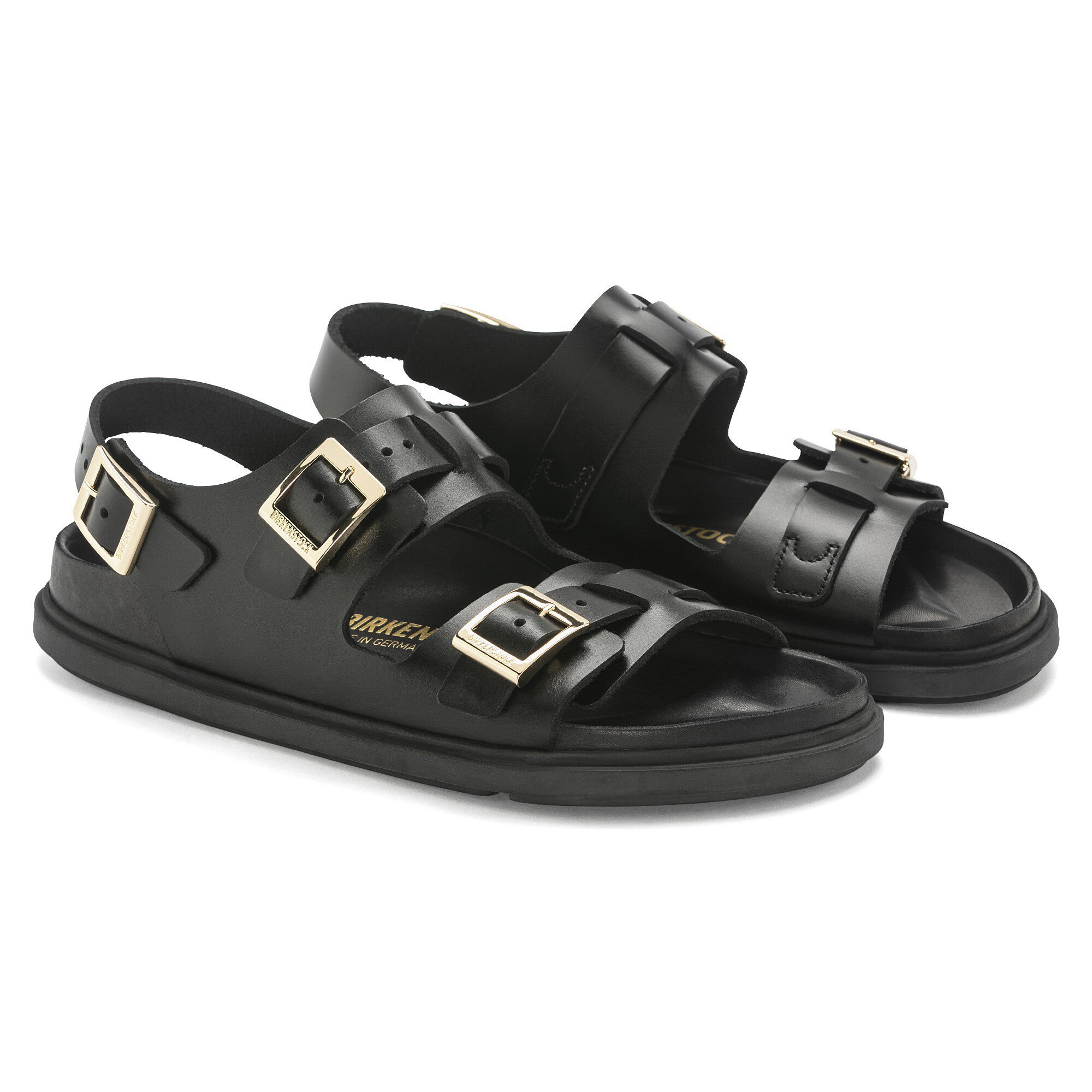 The BIRKENSTOCK Cannes is a puristic and modern style. It makes an impression with its delicate, premium look and its feminine elegance. The shiny, convex Zamak buckles are a sophisticated eye-catcher. The exquisite footbed is fully lined with soft piumato leather, making it exceptionally comfortable. The discontinuous outsole in the forefoot supports the foot’s roll-off motion and offers maximum flexibility. The upper is made from high-quality, soft natural leather.