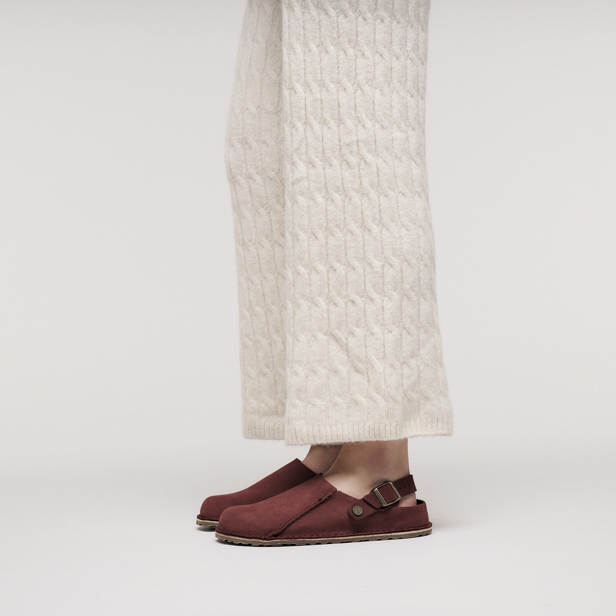 The BIRKENSTOCK Lutry is a slipper that can be worn as a backstrap style or as an open clog thanks to the flexible ankle strap. The footbed can be removed so that you can choose between three different footbed versions. This basic version of this design features our Standard Footbed. It replicates the natural print made by a foot walking on sand and will see you through the day in comfort. Its natural design is down to the upper made from especially soft suede, which hugs the foot like a second skin.