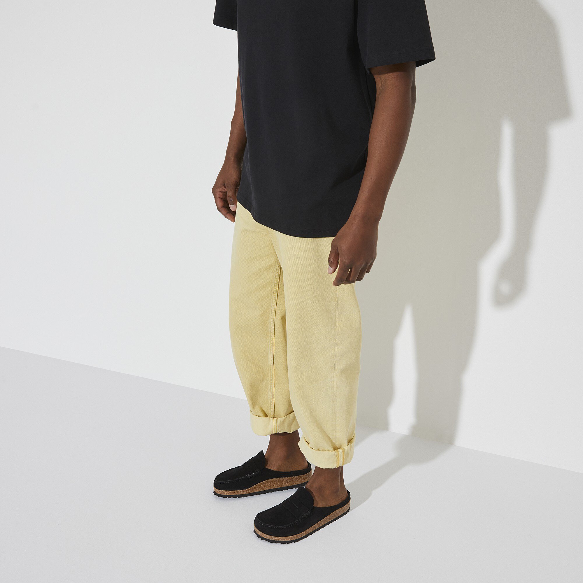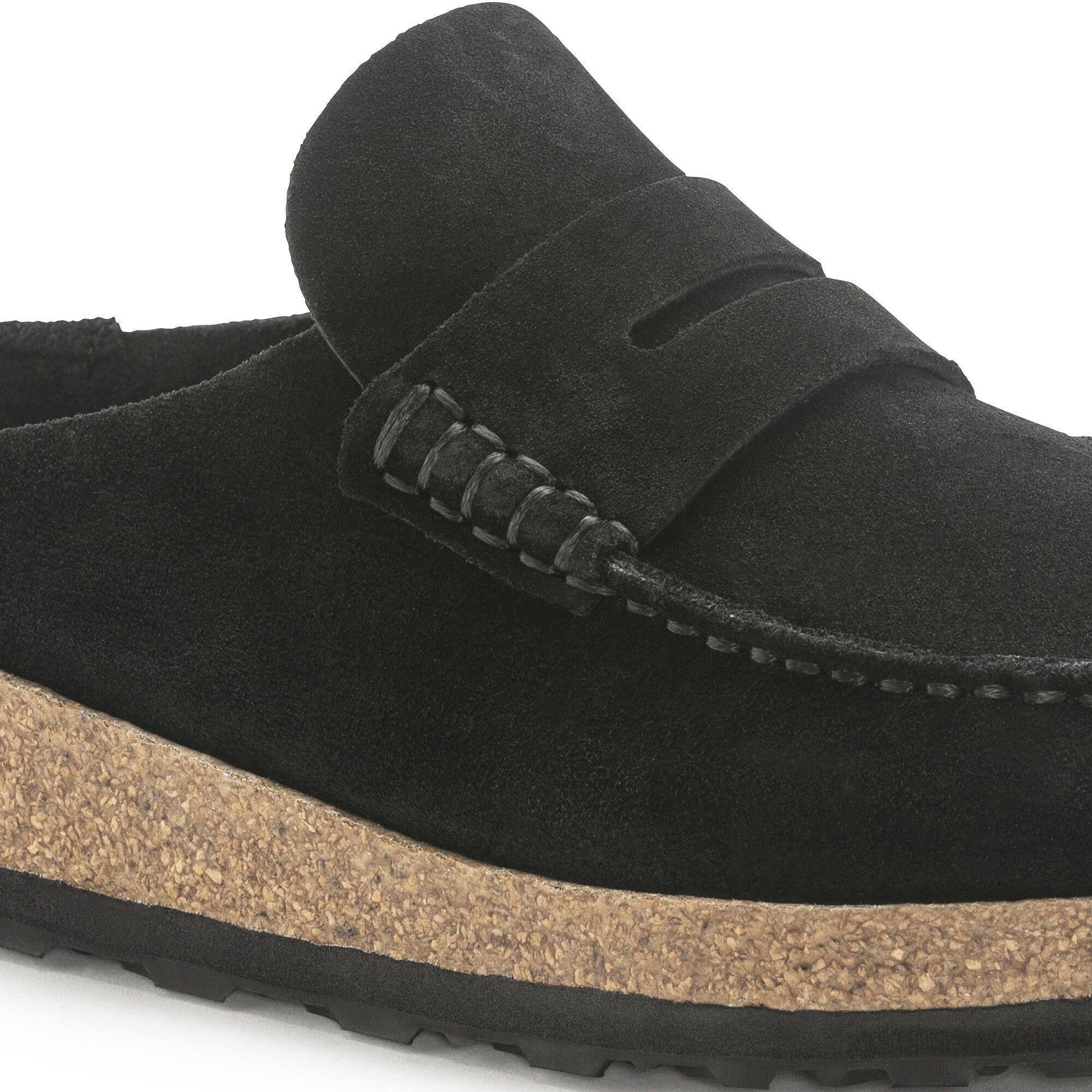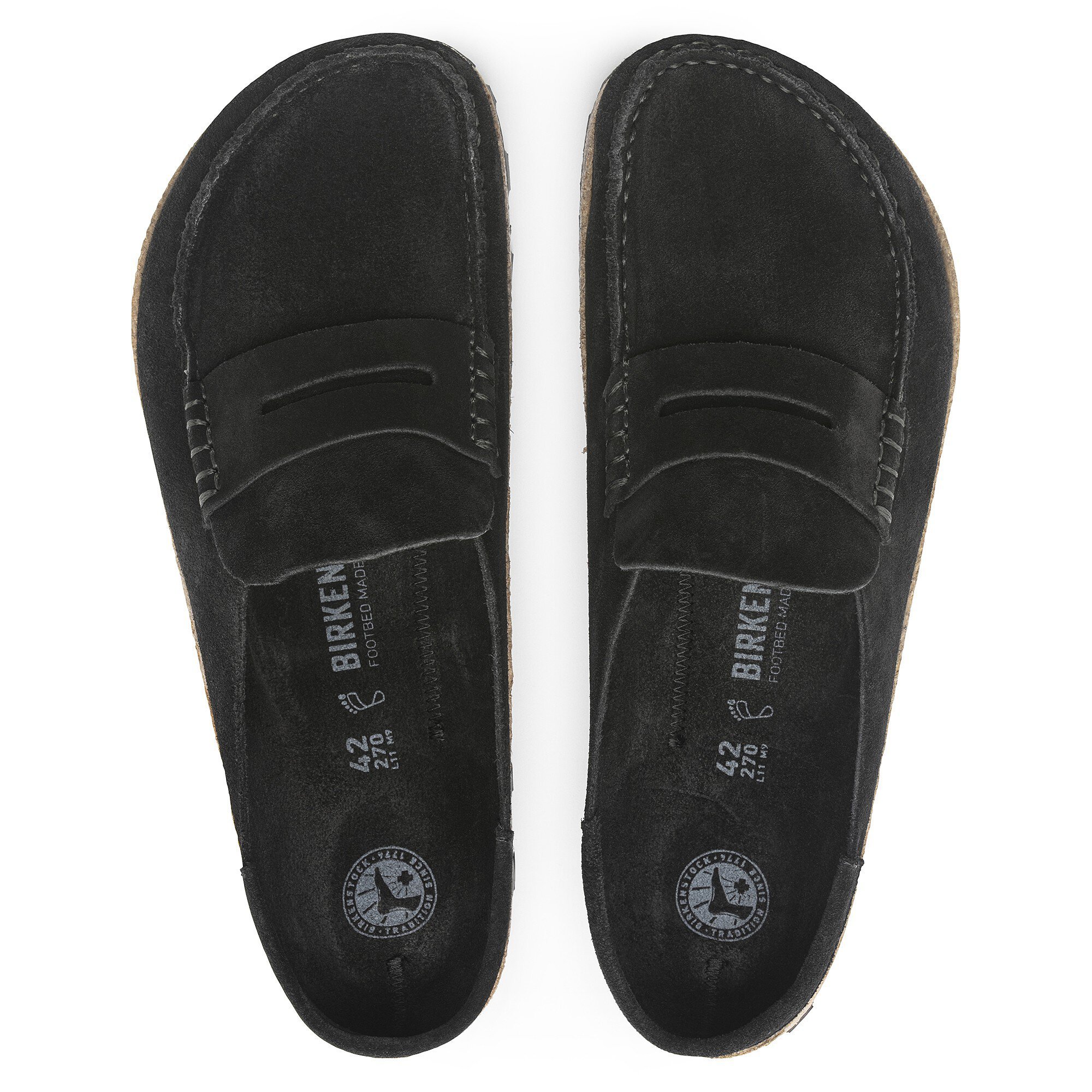 The BIRKENSTOCK Naples is the men’s version of the popular semi-open Buckley clog. The moccasin style with striking stitching lends this sandal a unique and masculine appearance. Thanks to its two components, the sole promotes stability and comfort. It comprises a cushioning midsole made from EVA and an outsole made from genuine rubber. Its natural design is down to the upper made from especially soft suede, which hugs the foot like a second skin.