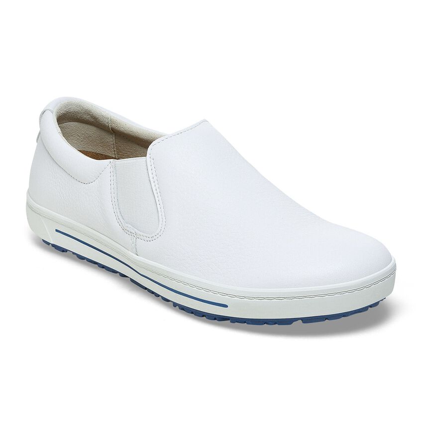 BIRKENSTOCK’s QO400 work shoe with a removable footbed offers firm grip and takes the strain off your feet, allowing you to stand and move around comfortably at work for many hours, even in demanding environments. The QO400 has no lacing and is presented as a simple slip-on shoe. The nonslip and oil- and petrol-resistant outsole provides for energy absorption around the heel. The upper is made from water-resistant smooth leather (WRU) and offers antistatic protection. The shoe is certified in accordance with EN ISO 20347:2012 and meets the requirements of protection category O2.