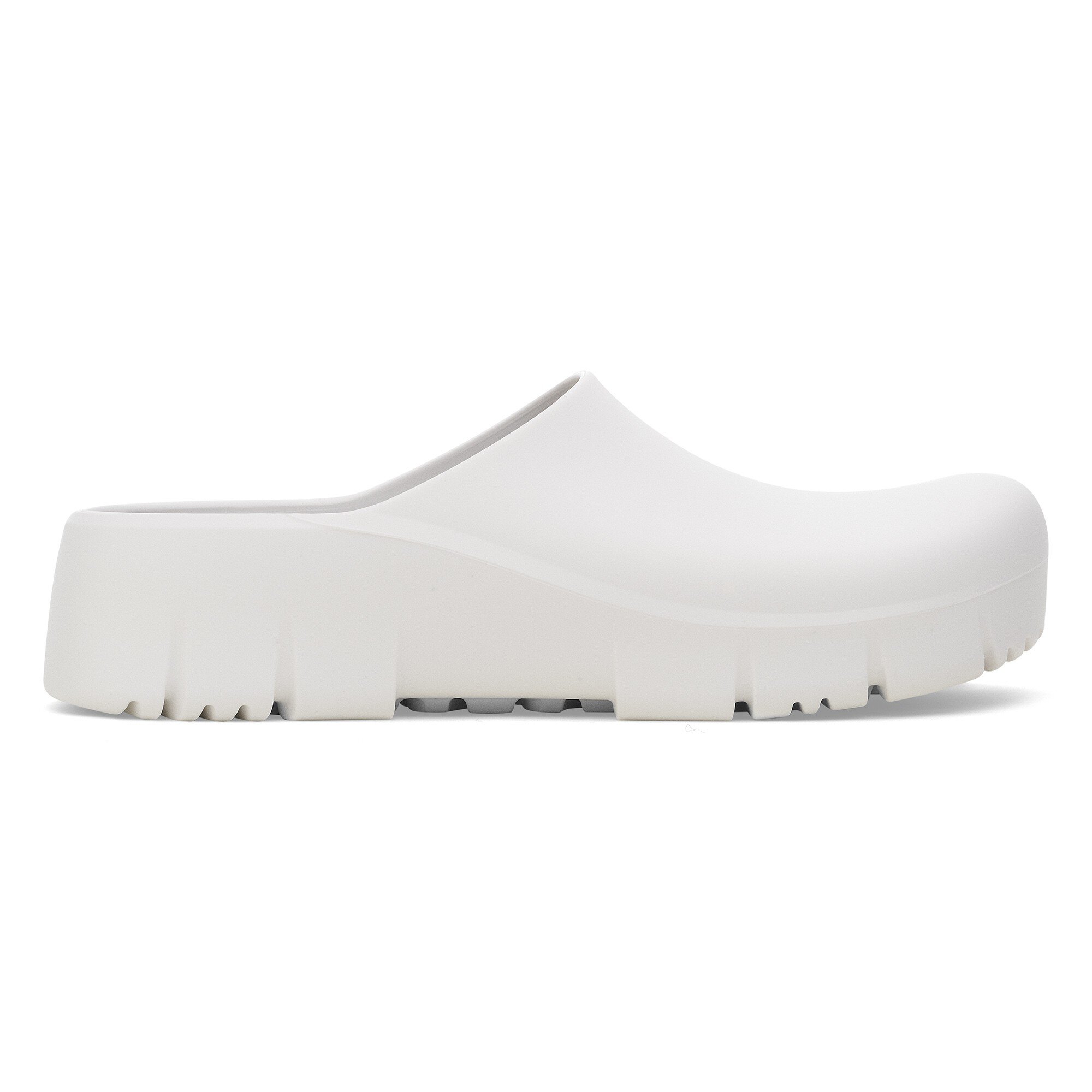The PU (polyurethane) clog Super Birki is suitable for leisure, garden, and professional wear. With its flat heel section, this popular and seamless clog provides the feet with all-around protection and grip. The flexible PU material with its smooth surface is water- and dirt-repellent, making the Super Birki extremely easy-care. The ergonomically designed cork footbed with its skin-friendly and breathable microfiber lining delivers a high level of comfort. This makes the Super Birki suitable for the wearer’s own personal insoles. The cork footbed is removable and can be washed at up to 30°C. The Super Birki (without footbed) can be washed at up to 80°C. BIRKENSTOCK also takes safety extremely seriously in terms of sole design: the directly foamed, flexible PU sole features a nonslip tread that offers firm grip on slippery surfaces (certified in accordance with EN ISO 20347:2012 OB E (SRC category)).