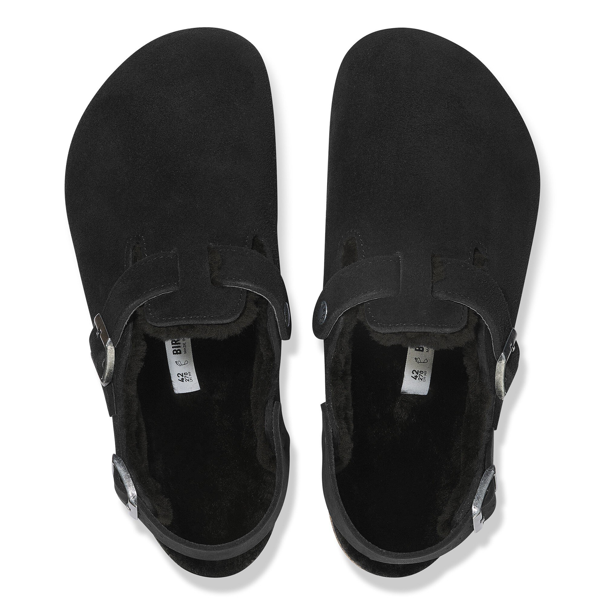The BIRKENSTOCK Tokio clog is a variation of the classic Boston. The model is characterized by its ankle strap and can easily be worn any time of the year. Here, the classic model comes in a particularly cozy version with color-coordinated shearling footbed lining and shearling-lined straps. The upper is made from soft suede.