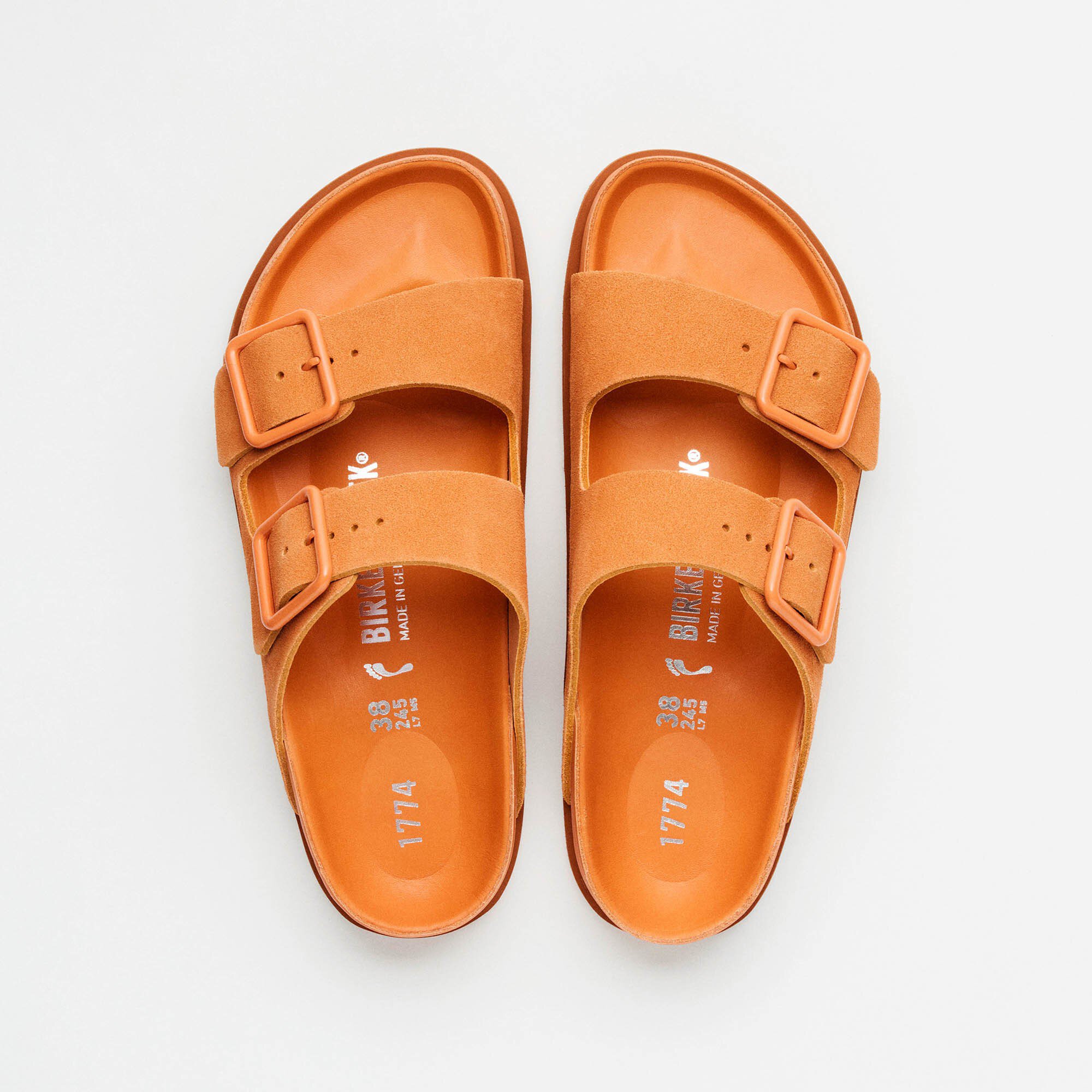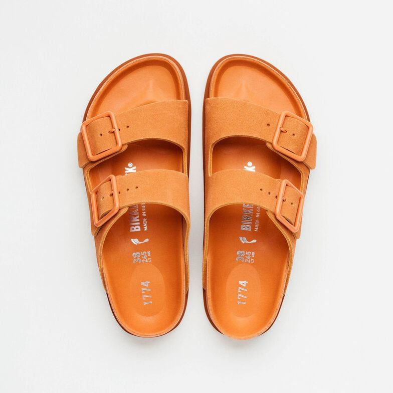 A rustic twist on a heritage design classic, the Arizona, the iconic silhouette has remained unchanged since its launch in 1973, updated in expertly sourced smooth leather from the upper to the footbed. The 1774 Collection delivers a new suede rendition in kurkuma, carafe and green moss.