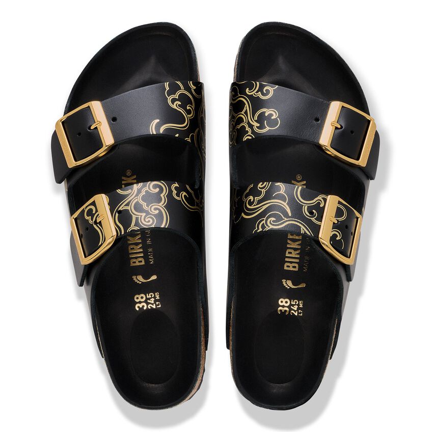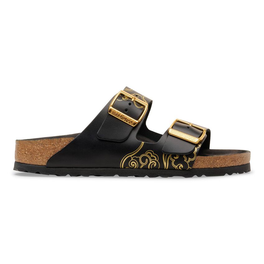 The BIRKENSTOCK Arizona is a genuine classic that has been delighting both men and women for decades. This simple sandal with two straps stands for timeless design and has long held cult status thanks to its comfort factor. The subtle ornamental print gives this version a stylish and elegant touch. The upper is made from high-quality, soft natural leather.