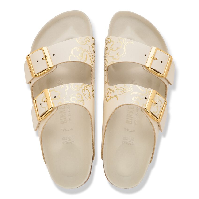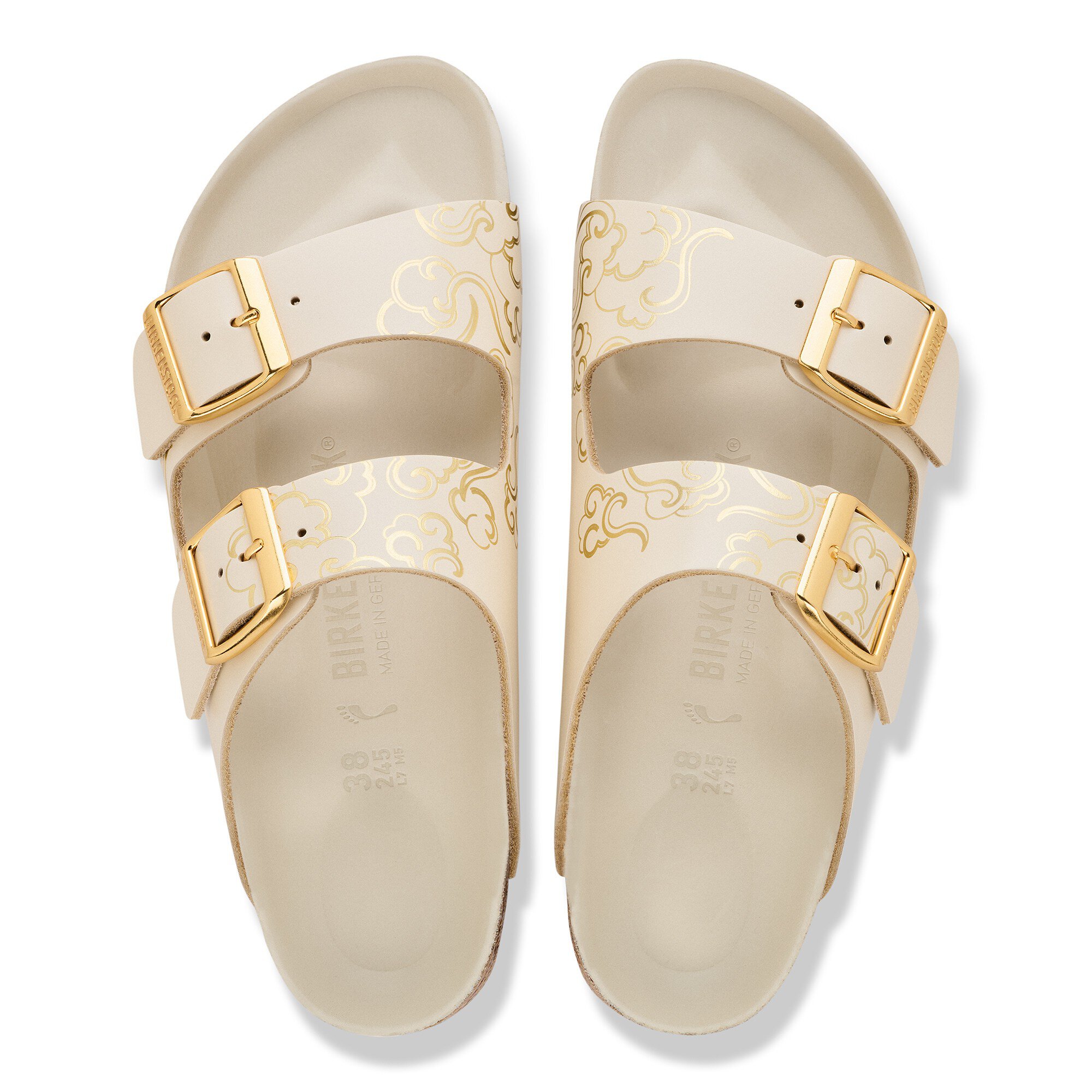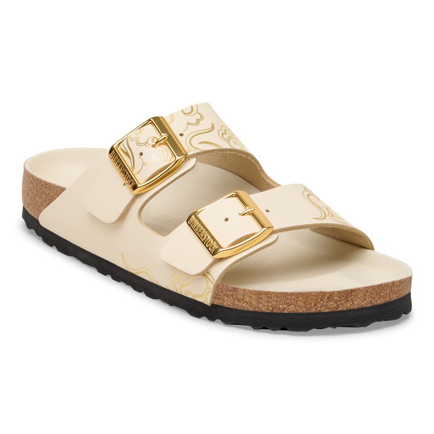 The BIRKENSTOCK Arizona is a genuine classic that has been delighting both men and women for decades. This simple sandal with two straps stands for timeless design and has long held cult status thanks to its comfort factor. The subtle ornamental print gives this version a stylish and elegant touch. The upper is made from high-quality, soft natural leather.