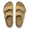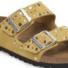 The BIRKENSTOCK Arizona is a genuine classic that has been delighting both men and women for decades. This simple sandal with two straps stands for timeless design and has long held cult status thanks to its comfort factor. This version features precisely positioned rivets with no back which are made to sit firmly in the leather in an elaborate production process without going too deep, making them unnoticeable when the shoe is worn. It’s quite an eye-catcher! The upper is made from soft suede which hugs the foot like a second skin.