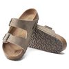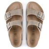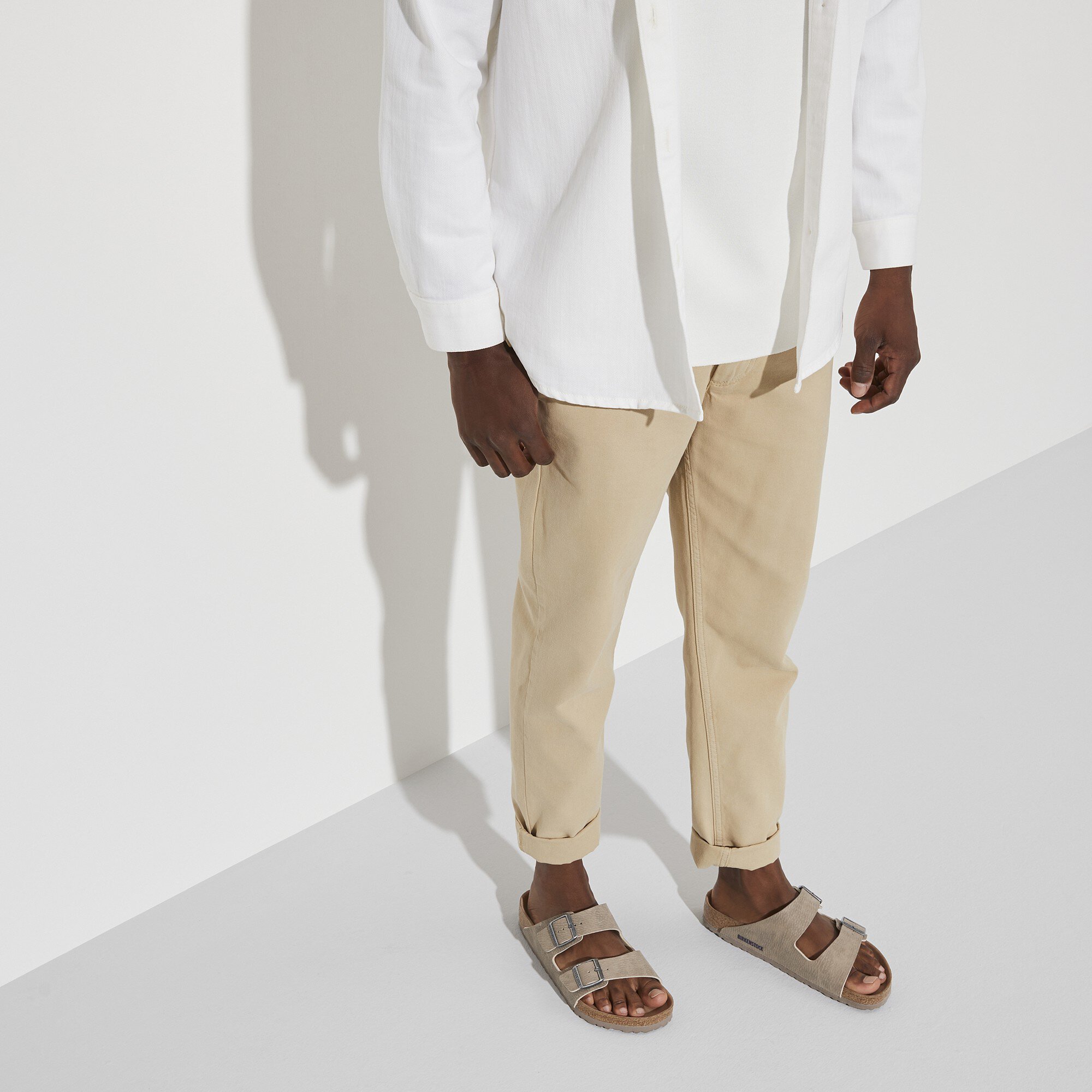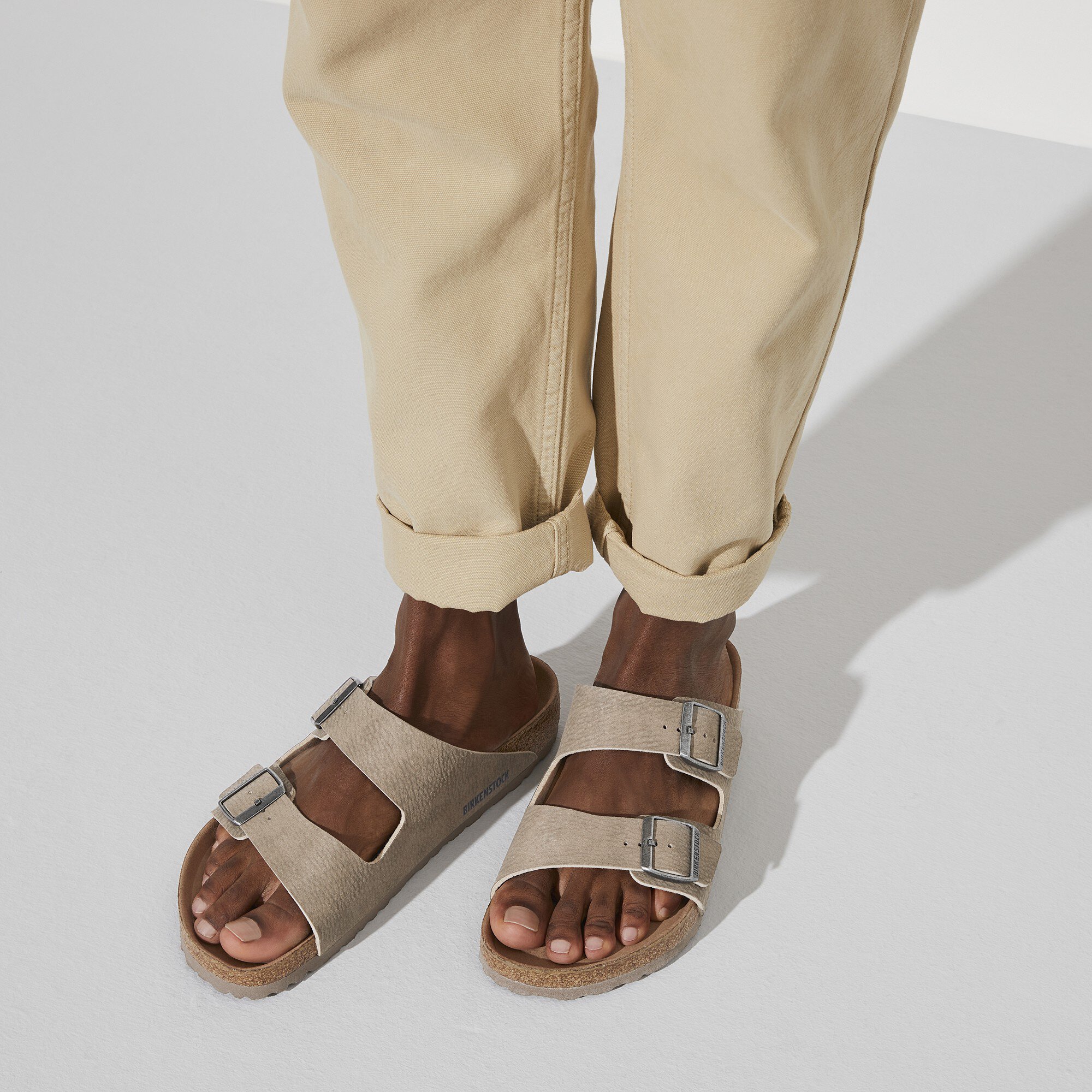 The BIRKENSTOCK Arizona is a genuine classic that has been delighting both men and women with its timeless design for decades. The color-coordinated outsole rounds off the shoe’s look of sophistication. This classic model has been given an update in a new material, with a vegan version now available. It is entirely free of animal products, as verified by independent testing laboratories. The upper is made from a skin-friendly synthetic material. The sandal boasts sophisticated material use with a matte finish that’s reminiscent of natural leather while nevertheless being 100% vegan.