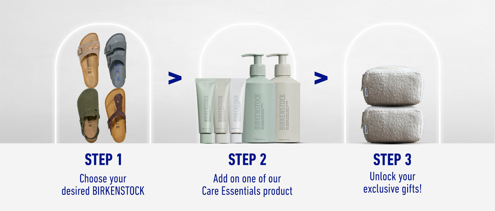 Enjoy special rewards with every purchase of ONE pair of Birkenstock + ONE Care Essentials product.