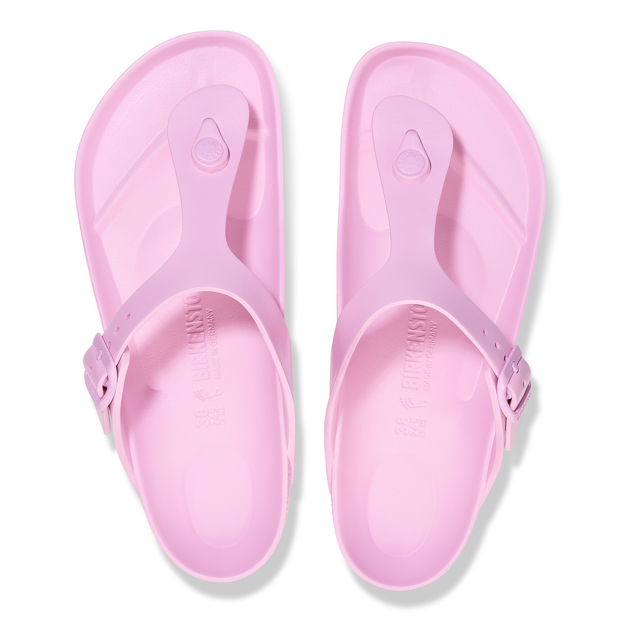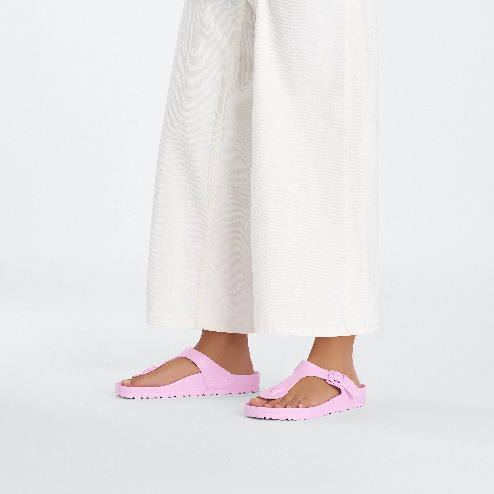 The BIRKENSTOCK Gizeh is a genuine classic. Modeled on the cork sandal, it is made from ultra light and highly flexible EVA. The high-quality, odor-neutral EVA has been tested for harmful substances and combines numerous positive attributes. It is ultra lightweight, highly elasticated, shock-absorbent, waterproof, skin-friendly – and offers the comfort you have come to expect from BIRKENSTOCK.