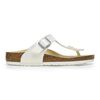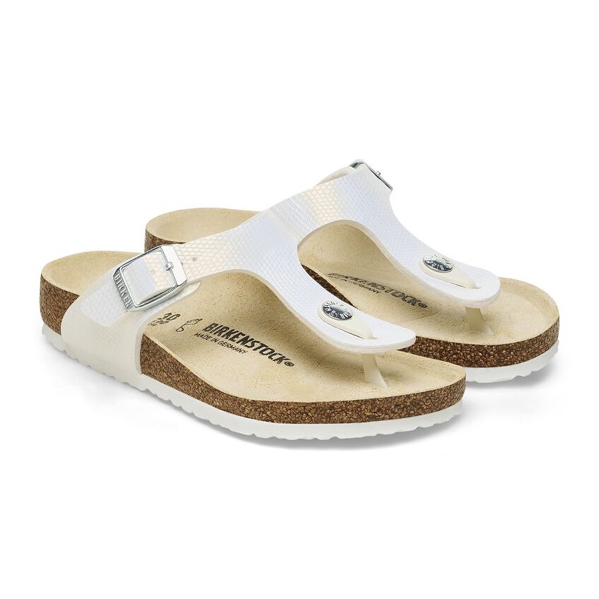 The BIRKENSTOCK Gizeh is a genuine classic that combines optimum grip with fashionable design to really turn heads at school. This version comes in a shiny lizard design and exudes elegance and a touch of extravagance thanks to the iridescent metallic foil and the reptile skin look. Inspired by nature, no two shoes have the same look and feel. The upper is made from the skin-friendly, hard-wearing synthetic material Birko-Flor®, which has been embossed.