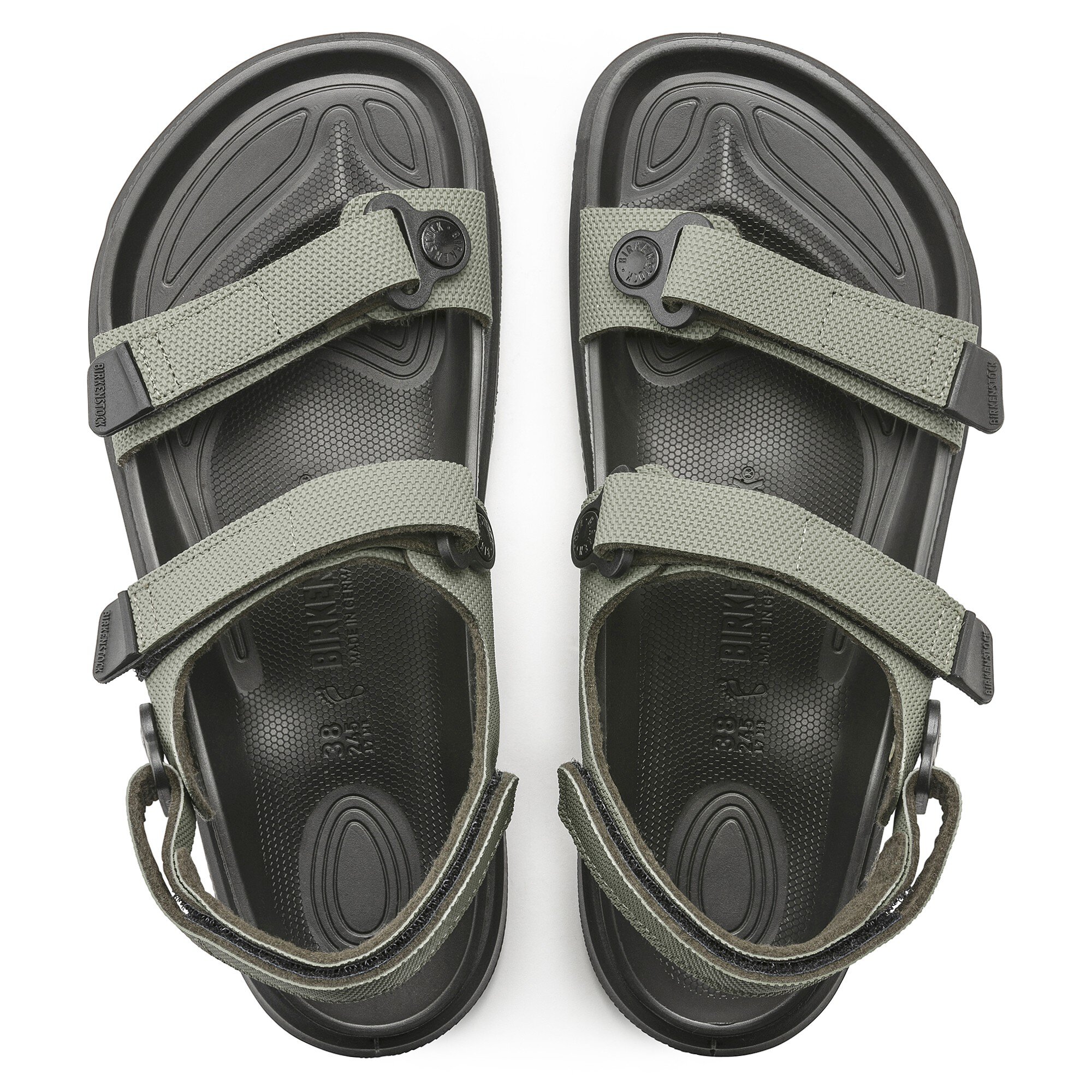 The BIRKENSTOCK Kalahari is a variation of the classic Milano and is the perfect sandal for anyone who is on their feet all day. The pin buckles have been replaced by hook-and-loop fasteners and the heel of the sole has been reinforced. The Kalahari boasts a high level of comfort and great functionality. This version is designed for BIRKENSTOCK fans who are active and looking for an experience. The color-coordinated footbed rounds off the shoe’s look of sophistication. The upper is made from the skin-friendly, hard-wearing synthetic material Birko-Flor® which was reinterpreted with a futuristic look.