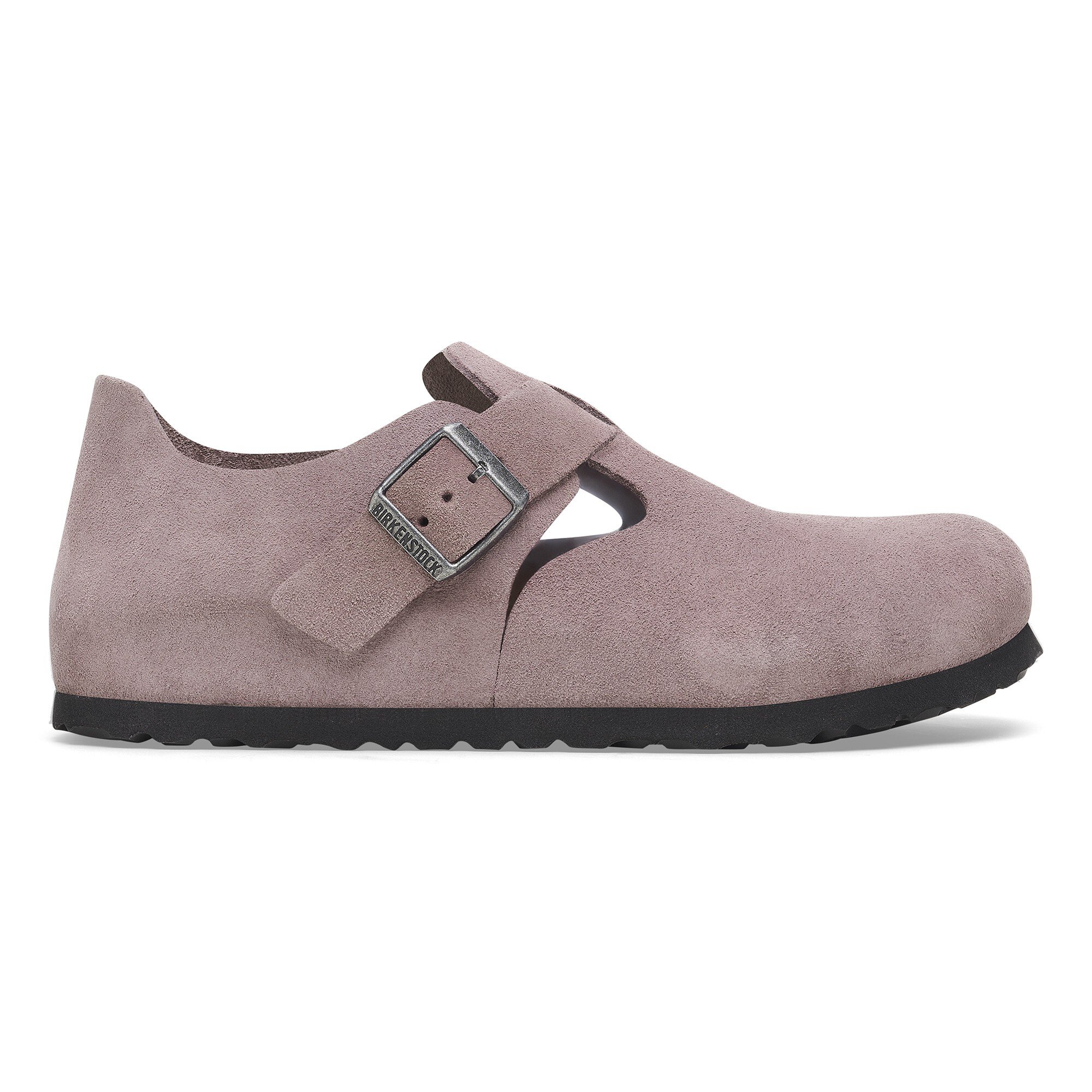 The BIRKENSTOCK London is a variation on the classic Boston shoe. The raised heel section is characteristic of this simple low shoe with no stitching. It boasts a natural, rustic look and an open-selvage, unlined finish. Its natural design is also down to the upper made from especially soft suede, which hugs the foot like a second skin.
