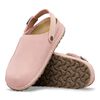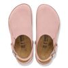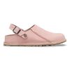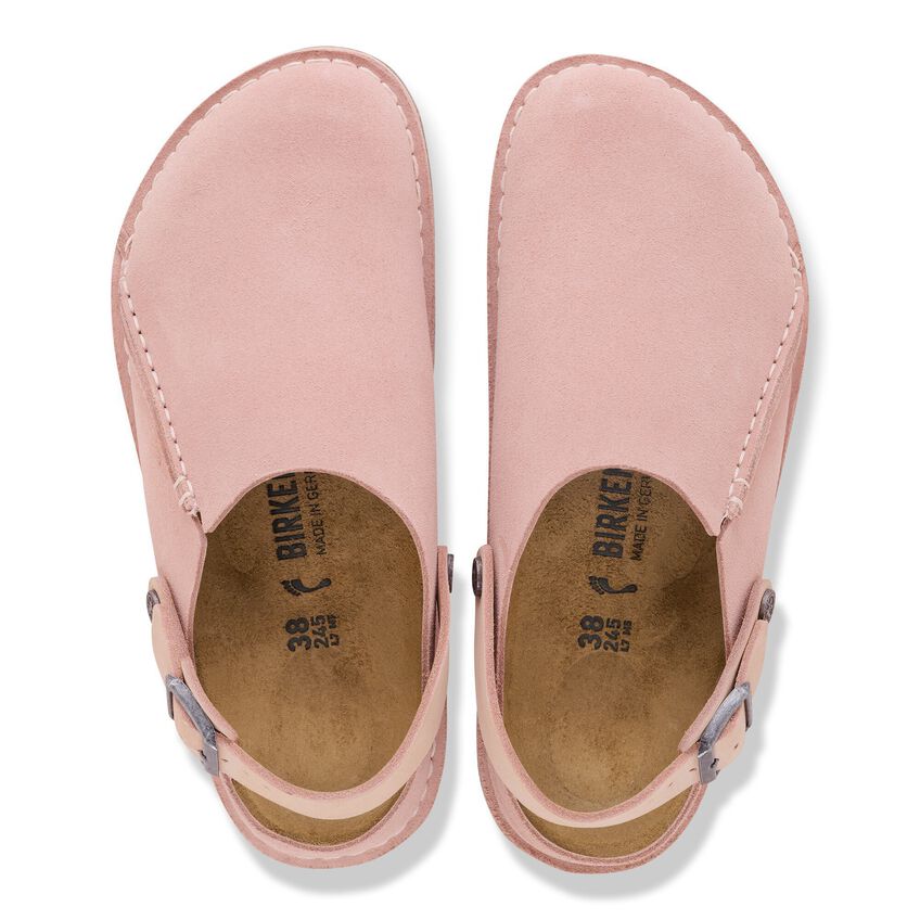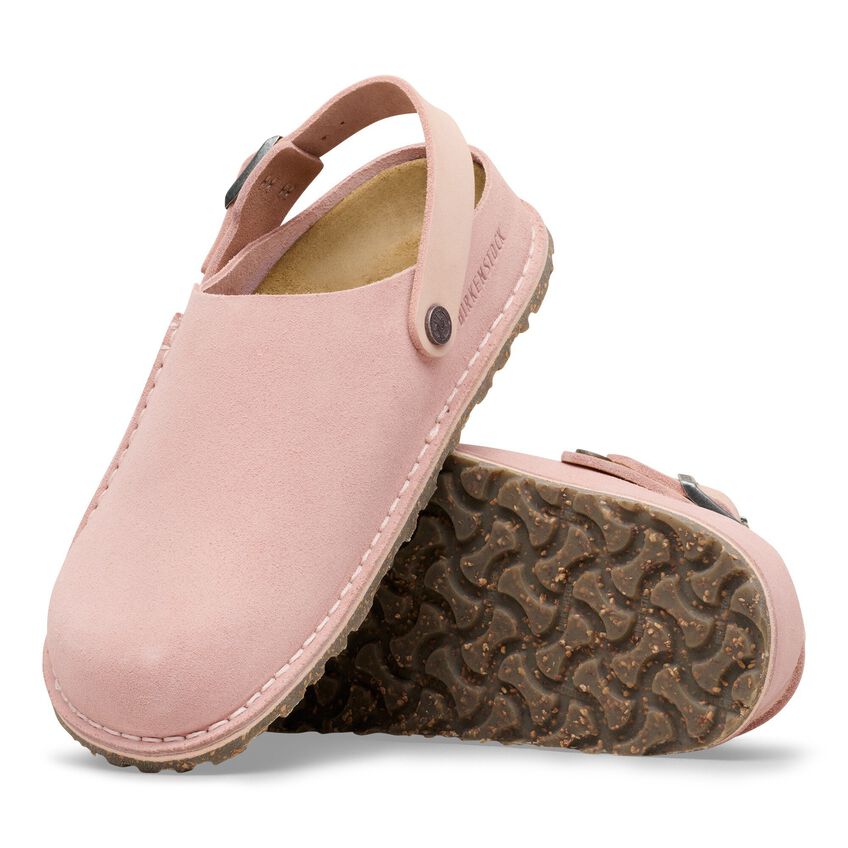The BIRKENSTOCK Lutry is a slipper that can be worn as a backstrap style or as an open clog thanks to the flexible ankle strap. The footbed can be removed, for you to choose between three different footbed versions. This basic version features our standard footbed. It replicates the natural print made by a foot walking on sand and will see you through the day in comfort. Its natural design is down to the upper made from especially soft suede, which hugs the foot like a second skin.