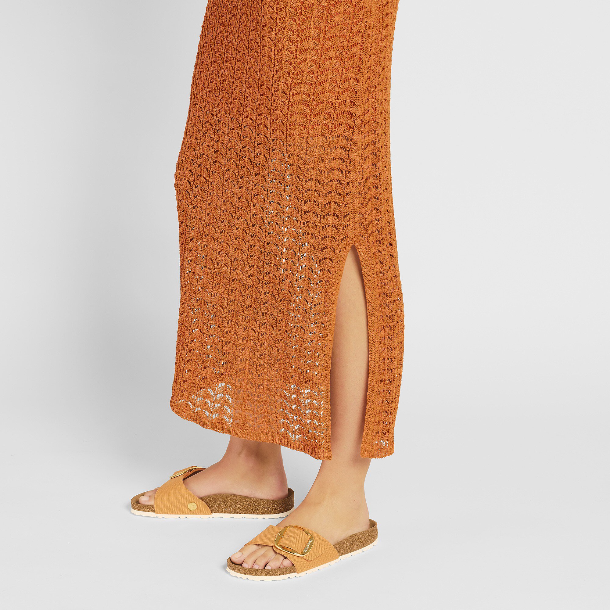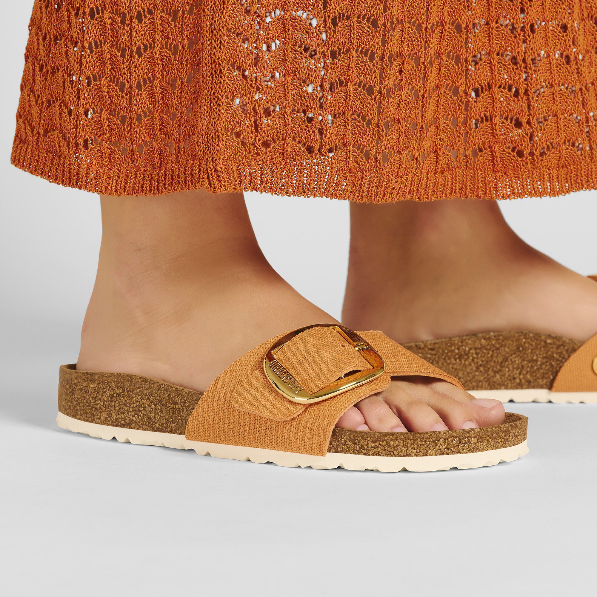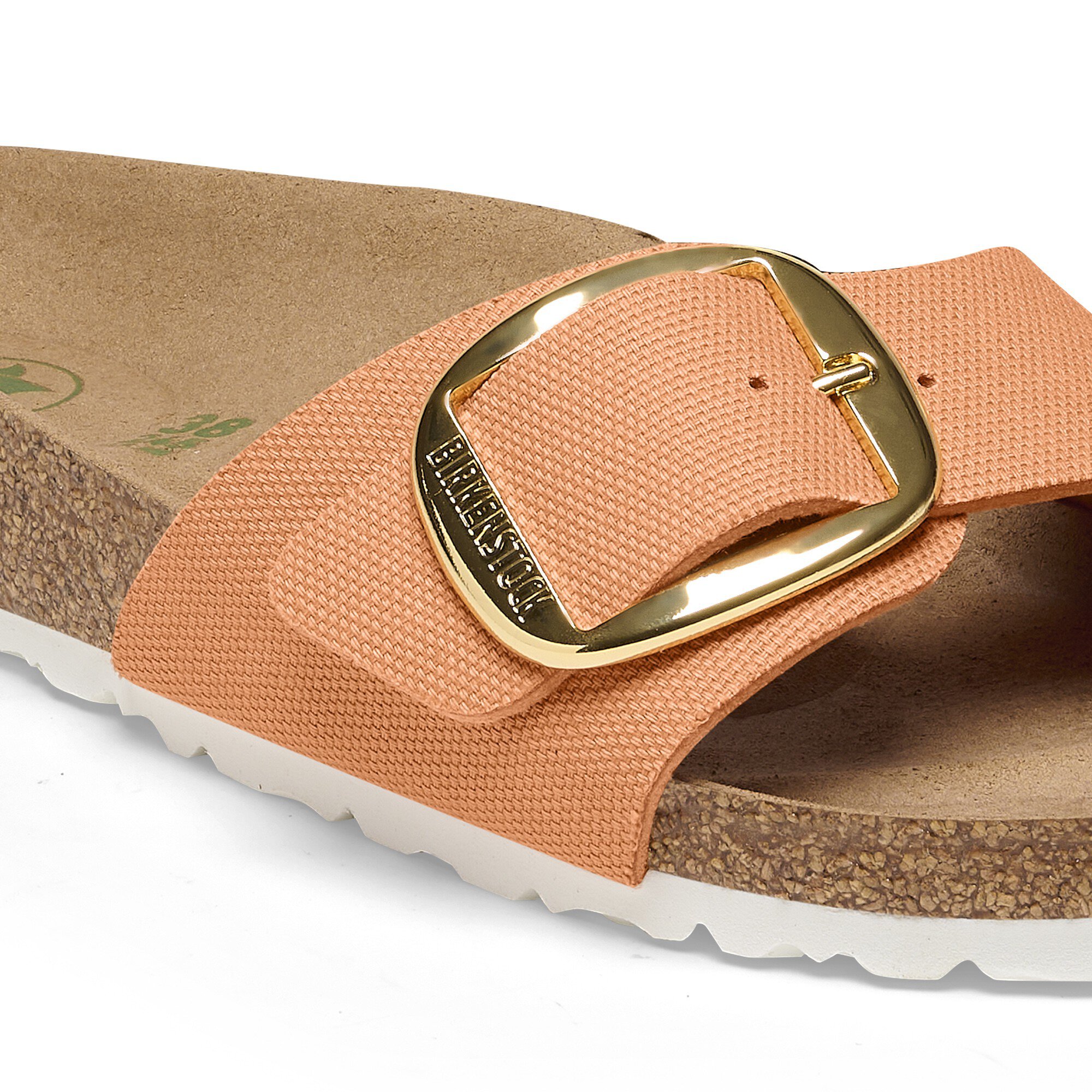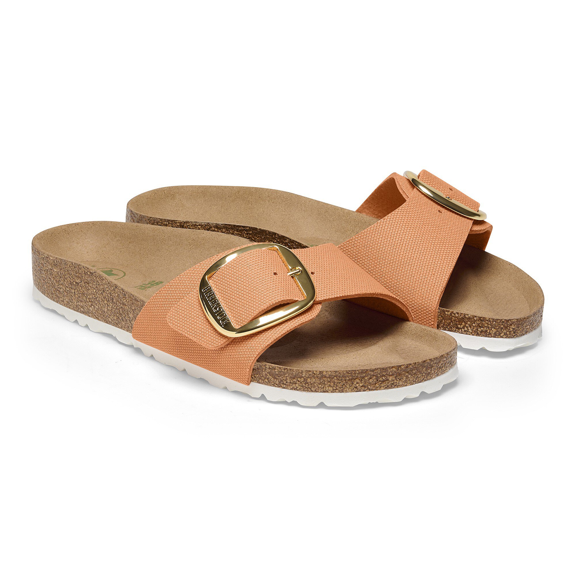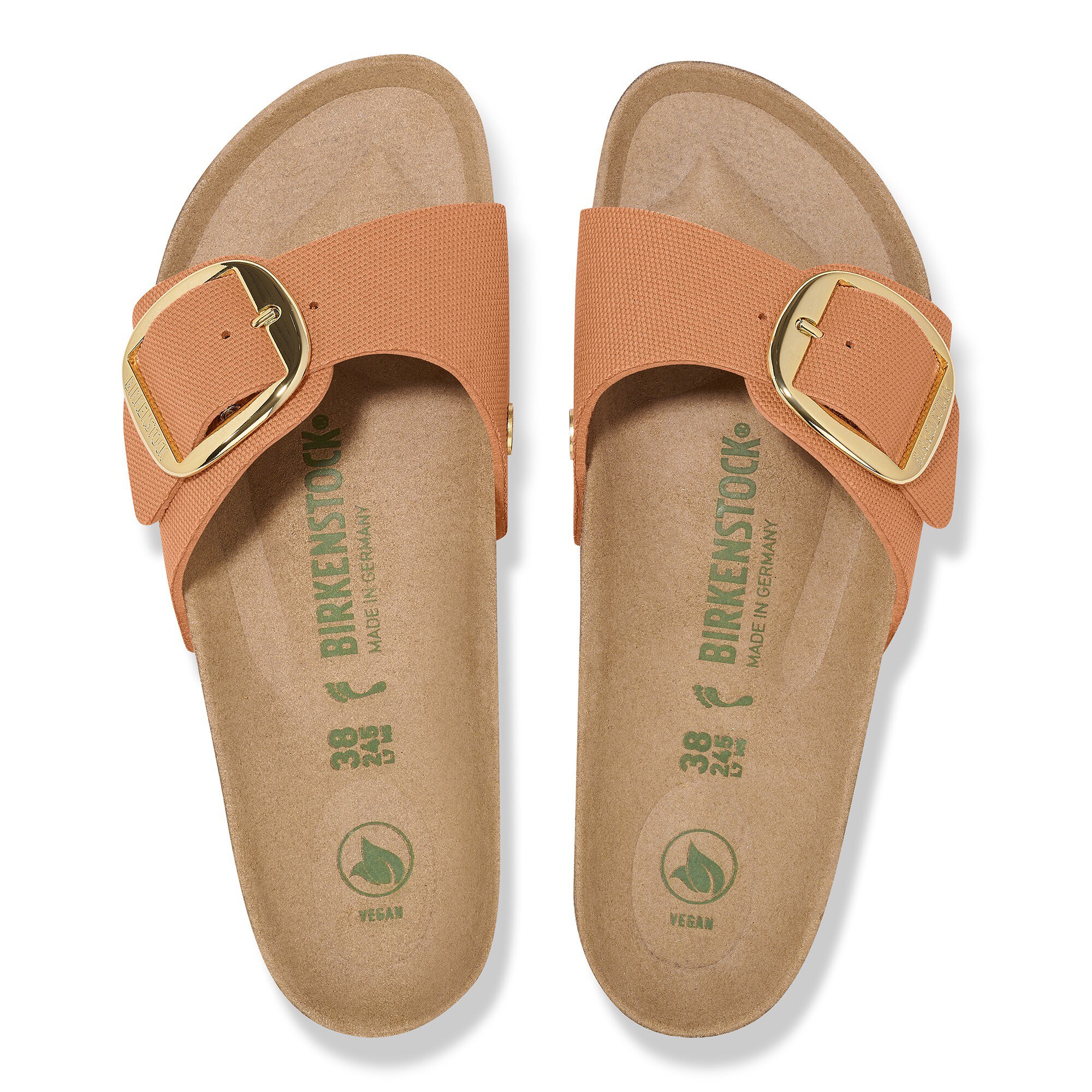 The BIRKENSTOCK Madrid is a genuine classic that delights the world of fashion with its minimalist design. This version comes with our popular Big Buckle. This sandal has been given an update in a new material, with a vegan version now available. It is entirely free of animal products, as verified by independent testing laboratories. The upper is made from a soft fabric.