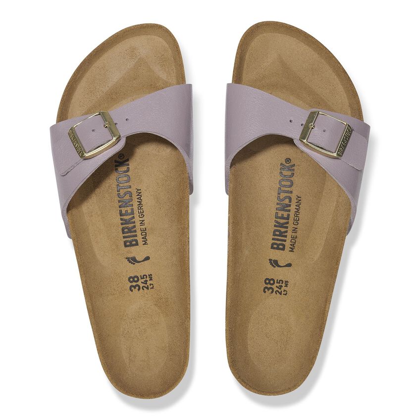 The BIRKENSTOCK Madrid is a veritable classic that delights the world of fashion with its minimalist design. Here, we see the sandal with a silky sheen finish. The upper is made from the skin-friendly, hard-wearing synthetic material Birko-Flor®.