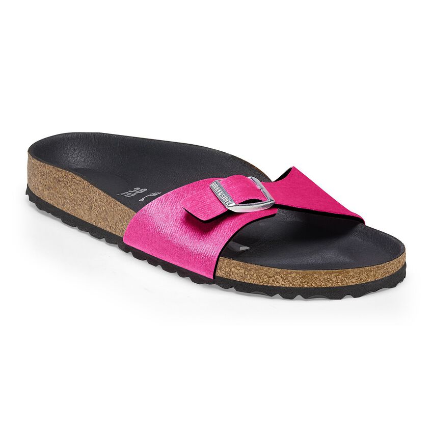 The BIRKENSTOCK Madrid is the oldest member of the family of models, making it a veritable classic. Launched as a “gymnastics sandal” half a century ago, this simple single-strap model has gone on to become a firm fashion favorite. This version comes in sophisticated velvet. The color-contrasting footbed rounds off the shoe’s look of sophistication. The upper is made from smooth fabric.