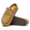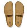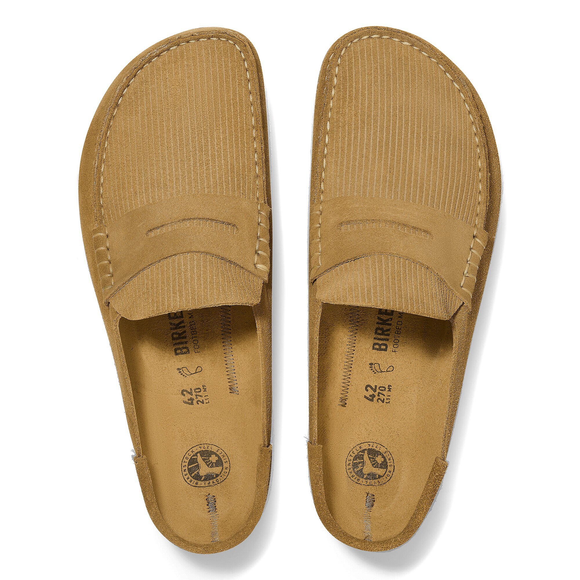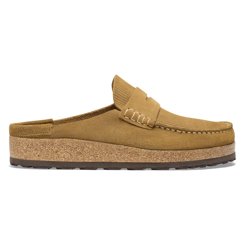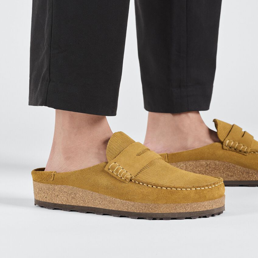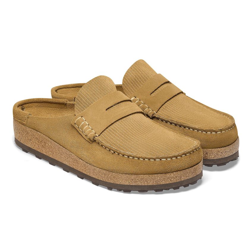 The BIRKENSTOCK Naples is the men’s version of the popular semi-open Buckley clog. The moccasin style with striking stitching lends this sandal a unique and masculine appearance. This version boasts a casual corduroy style. Perfect for authentic streetstyle outfits! The upper is made from soft, embossed suede.
